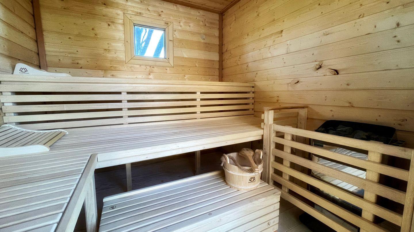 2021 wurde zusätzlich noch eine Sauna verbaut. In dieser liegen Saunahandtücher für Sie bereit - im Preis inbegriffen.