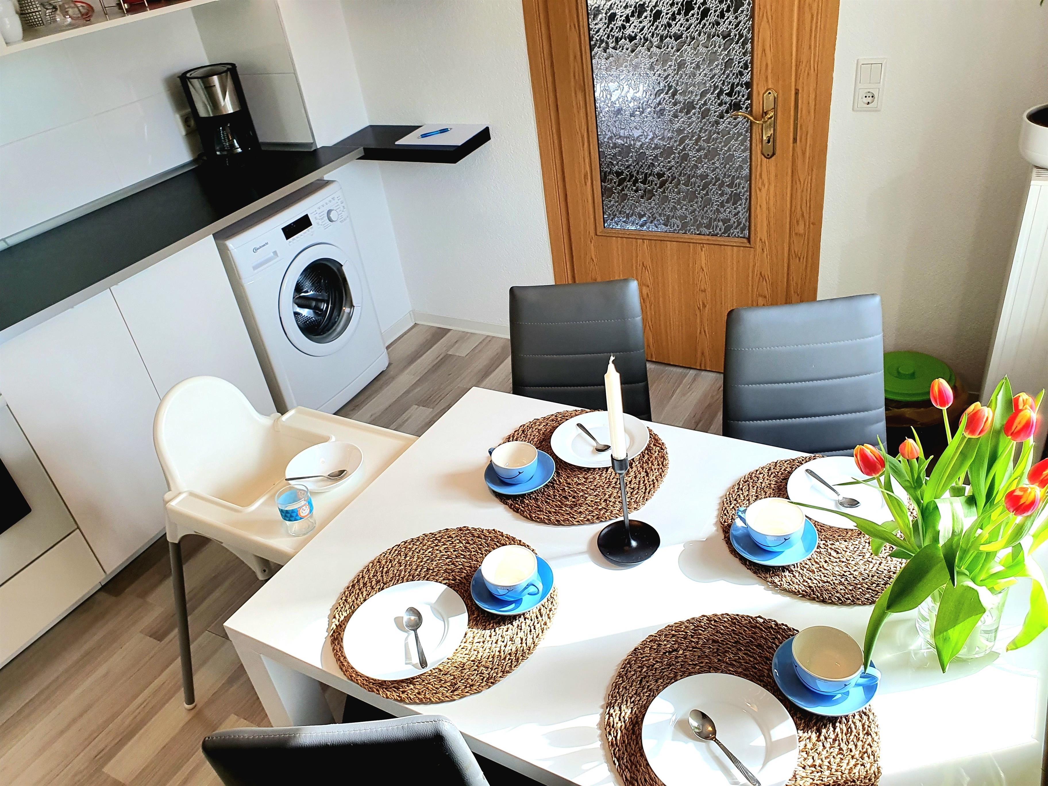 Die Wohnung verfügt über 4 Schlafzimmer, wovon drei Zimmer mit einem großen Doppelbett und einer Schlafcouch ausgestattet sind. Ein weiteres Schlafzimmer ist mit einem Etagenbett und einem Einzelbett ausgestattet. Zwei Babybetten mit Ausstattung stehen in der Unterkunft bereit. Neben einem 34 Quadratmeter großen Wohn- Esszimmer finden Sie eine gut ausgestattete Küche. Für die Kleinsten stehen zwei Kinderhochstühle sowie Kinderbesteck bereit.