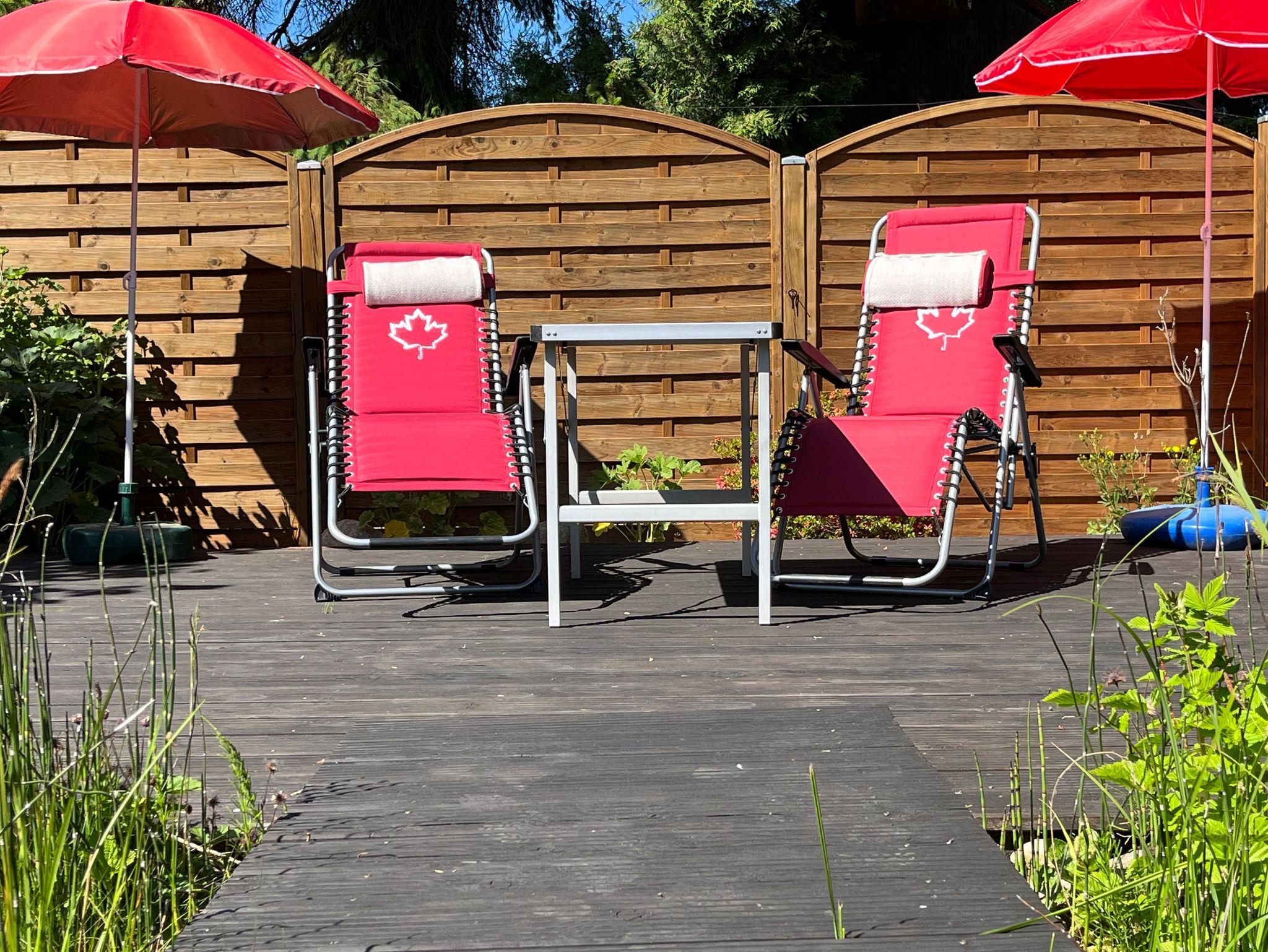 Ein großer Garten mit viele gemütliche Sitzecken.