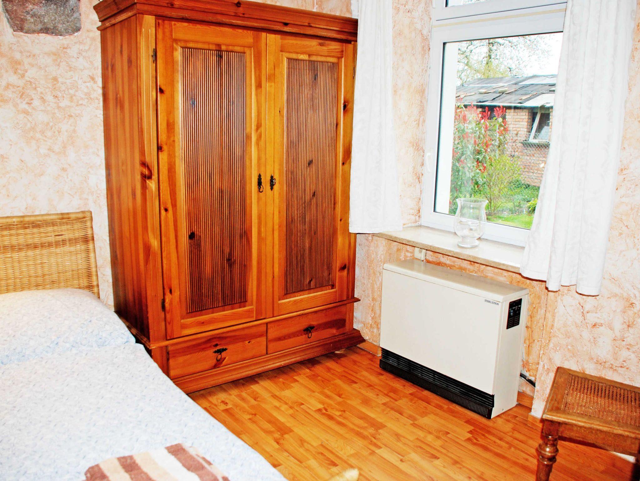 Sie verfügt über einen separaten Eingang. Im Wohnzimmer befinden sich eine Sitzcouch mit Tisch, ein Schrank und ein TV-Gerät. Ein schöner Kamin sorgt aauch im Winter für Behaglichkeit! Die kleine Pantryküche verfügt über einen Herd, Kaffeemaschine, Wasserkocher, Toaster, Tiefkühl- und Kühlschrank. Im Schlafzimmer stehen ein bequemes Doppelbett (140 x 200) mit Nachttischen und Leselampen, eine Liege (0,90 x 2,00 m) sowie ein Kleiderschrank.