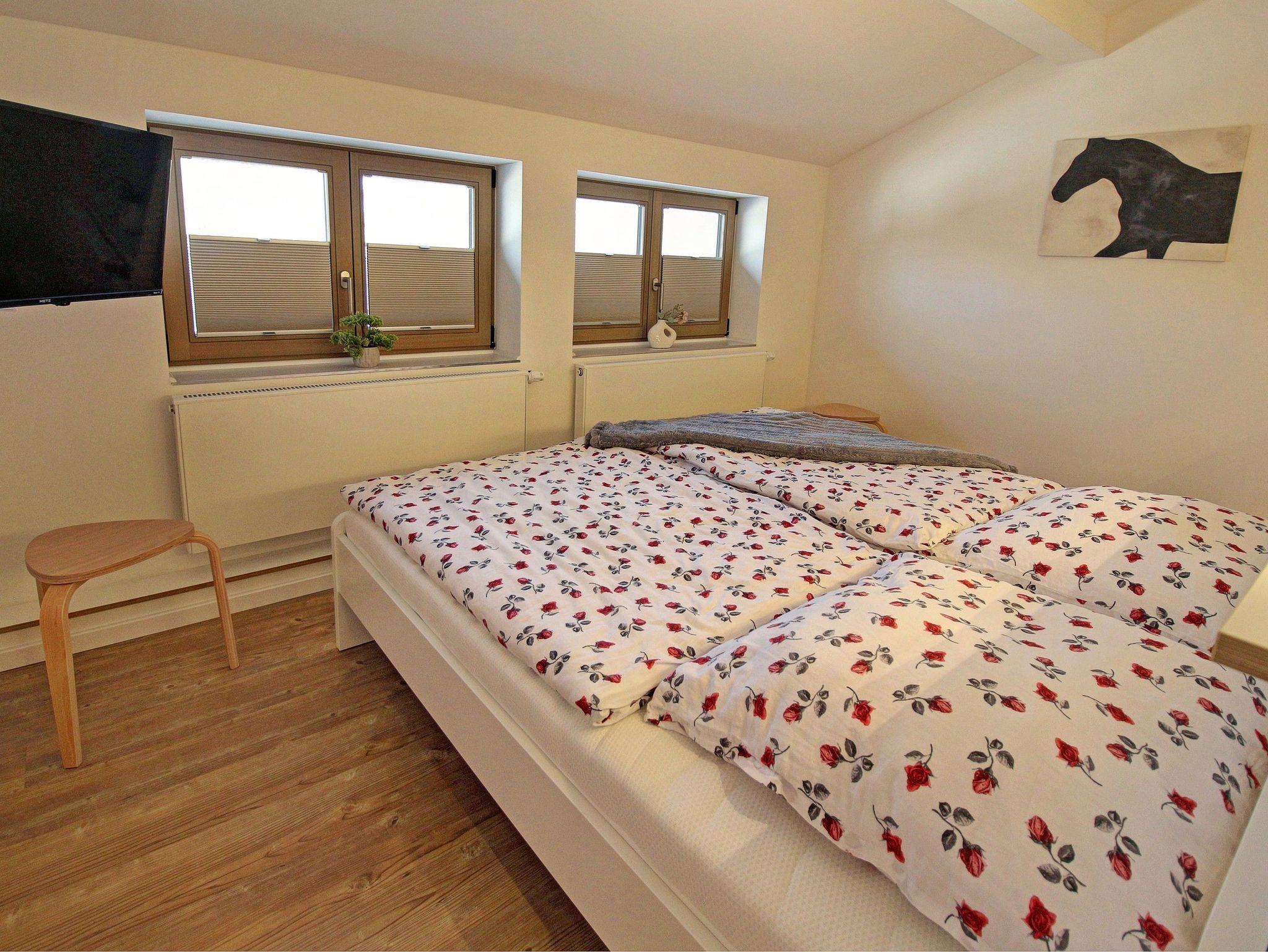 Die Schlafzimmer verfügen jeweils über ein Doppelbett (1,80x2,00m, getrennte Matratzen). Kleiderschränke und auch jeweils ein TV sind ebenfalls vorhanden. Die 2 Bäder verfügen neben einem WC auch jeweils über eine große, ebenerdige Dusche.