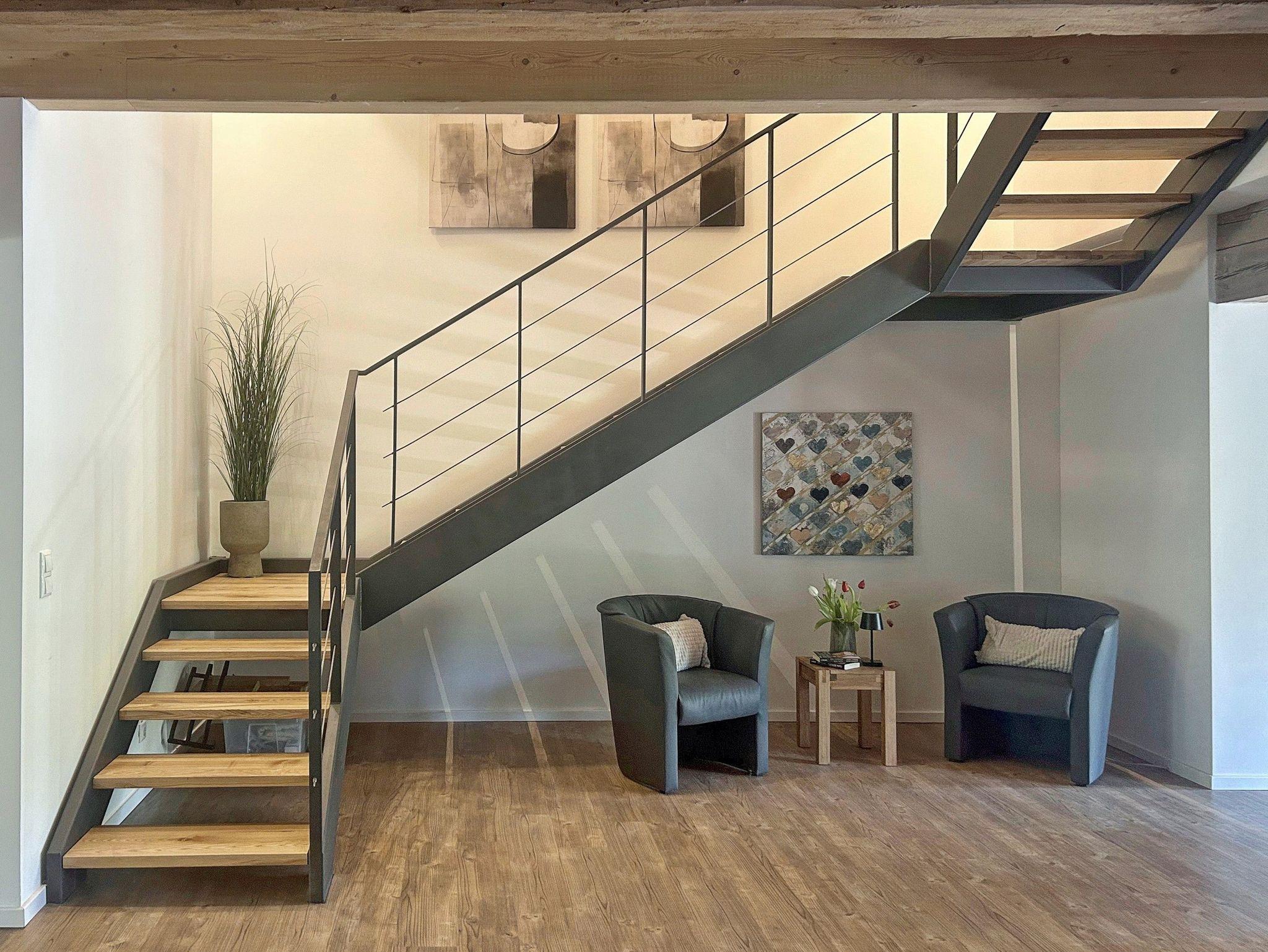 Hinweis: Aufgrund der offenen Treppe zum Obergeschoss des Hauses, bitten wir bei Familien mit kleinen Kindern um besondere Vorsicht.