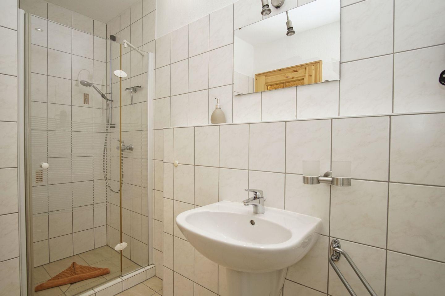 BAD // innen liegendes Badezimmer mit Dusche, WC und Waschbecken ++