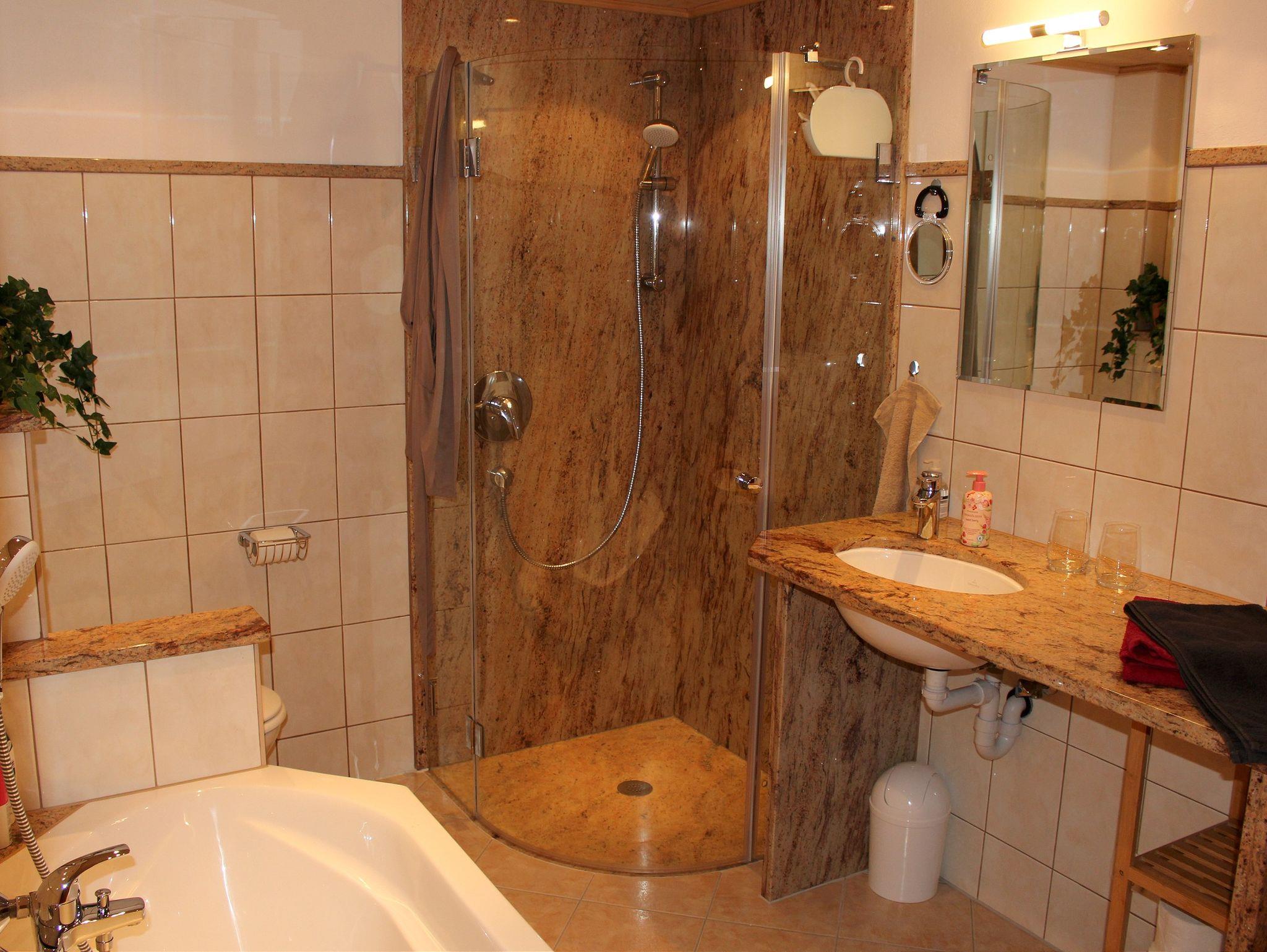Unsere neu renovierte Ferienwohnung 'Edelweiß' befindet sich im 1. Obergeschoss. Auf ca. 80 qm verteilt finden Sie eine separate Küche, einen großen Wohnbereich, ein Bad, Flur sowie 2 Schlafzimmer. Die vollausgestattete Küche verfügt über Mikrowelle, Kaffeemaschine, Toaster, Geschirrspüler, Essecke mit Eckbank und großem Tisch. Außerdem befindet sich eine (Schlaf-) Couch und ein großer Flachbildschirm in diesem Bereich. Das Bad ist ausgestattet mit einer Badewanne, separater, ebenerdiger Dusche, WC, Waschtisch, Handtuchtrockner, Fön, Kosmetikspiel sowie Fußbodenheizung.