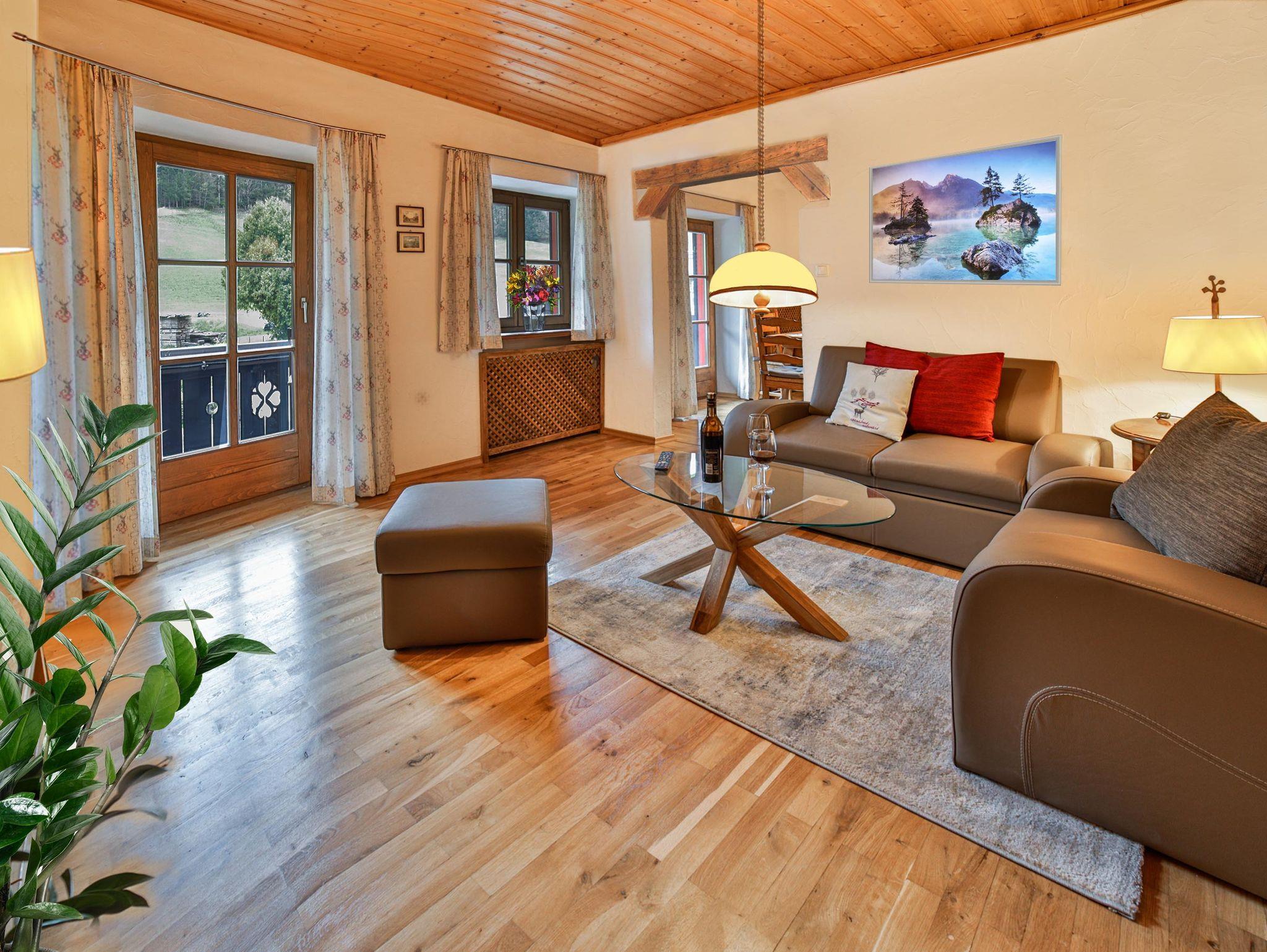 Ruhige, gemütliche Ferienwohnung zu Füßen des Watzmanns und Hochkalters am Eingang zur Wimbachklamm und ins Wimbachtal. Großer Balkon, Nordlage, getrenntes Schlafzimmer, neue, voll ausgestattete Wohnküche mit offenem Durchgang zum Wohnzimmer. Liegewiese, Parkplatz. Idealer Ausgangspunkt für die schönsten Wanderungen und Touren im Nationalpark.Nichtraucherwohnung, gerne können Sie Ihre Zigarette auf dem Balkon genießen.