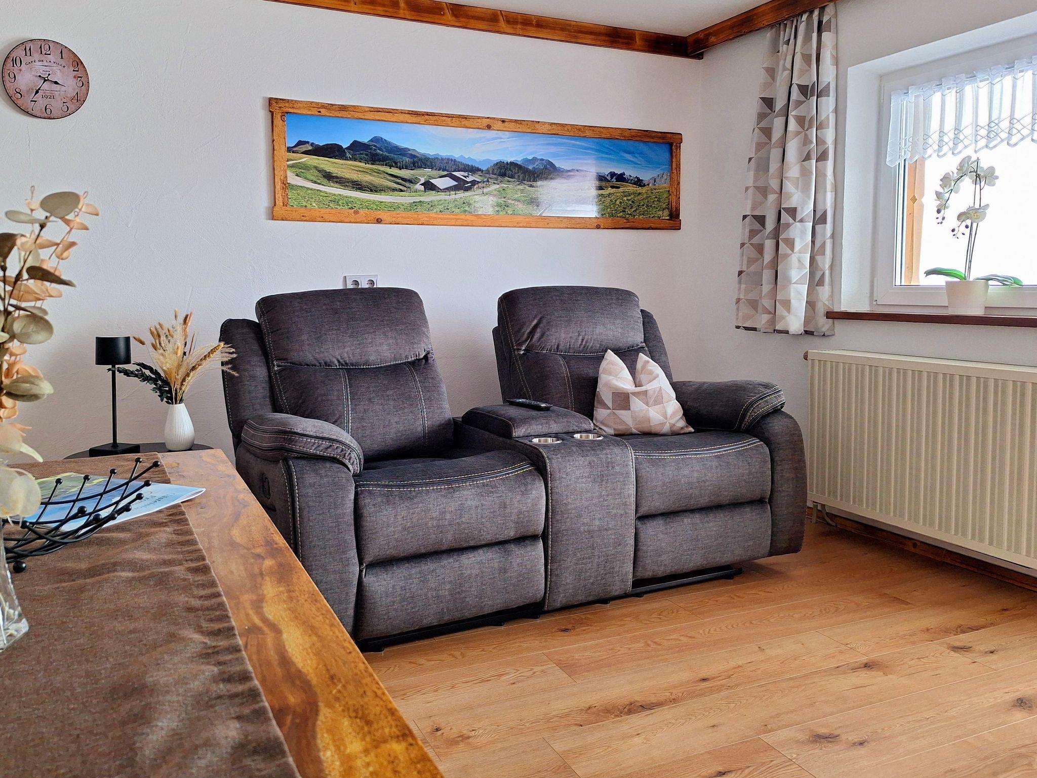 Urig und liebevoll mit altem Holz (Schreinerarbeiten) renovierte und neu gestaltete Nichtraucher-Ferienwohnung. Die Wohnung verfügt über ein Wohnzimmer mit TV, Heimkinosessel, Safe, Ess- und Sitzecke, einer separaten kleinen Küche, einem separaten Schlafzimmer sowie Dusche/WC und Diele. Die gesamte Wohnung ist mit allergikerfreundlichen Fußböden ausgestattet und vom Balkon aus haben Sie einen herrlichen Blick auf das gesamte Bergpanorama.