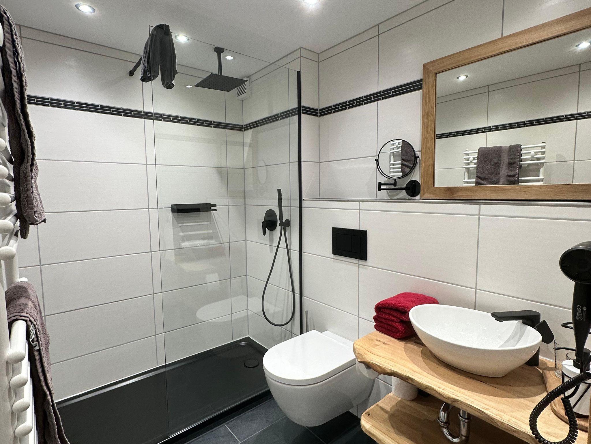 Das Bad mit Dusche/WC ist mit Fön ausgestattet.