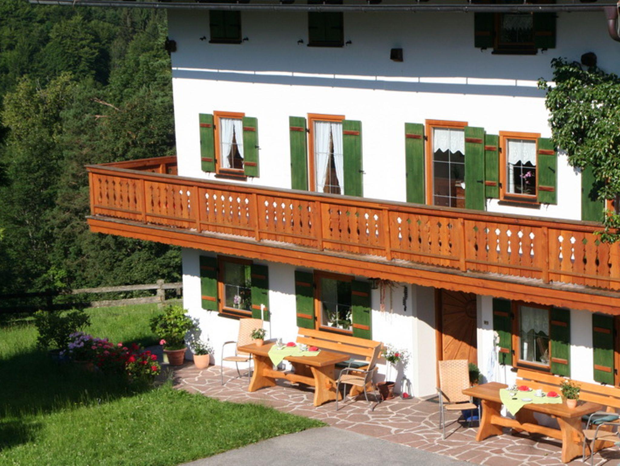 Unsere Ferienwohnung liegt im 2. Stock unseres Hauses und bietet Ihnen vom Süd-Balkon freie Sicht auf unsere Berge Watzmann, Hochkalter und Reiteralpe - ein Panorama, das Sie so schnell nicht vergessen werden. Die Wohnung ist im ländlichen Stil eingerichtet und verfügt über 2 Schlafzimmer, eine Wohnküche sowie Dusche und ein separates WC.