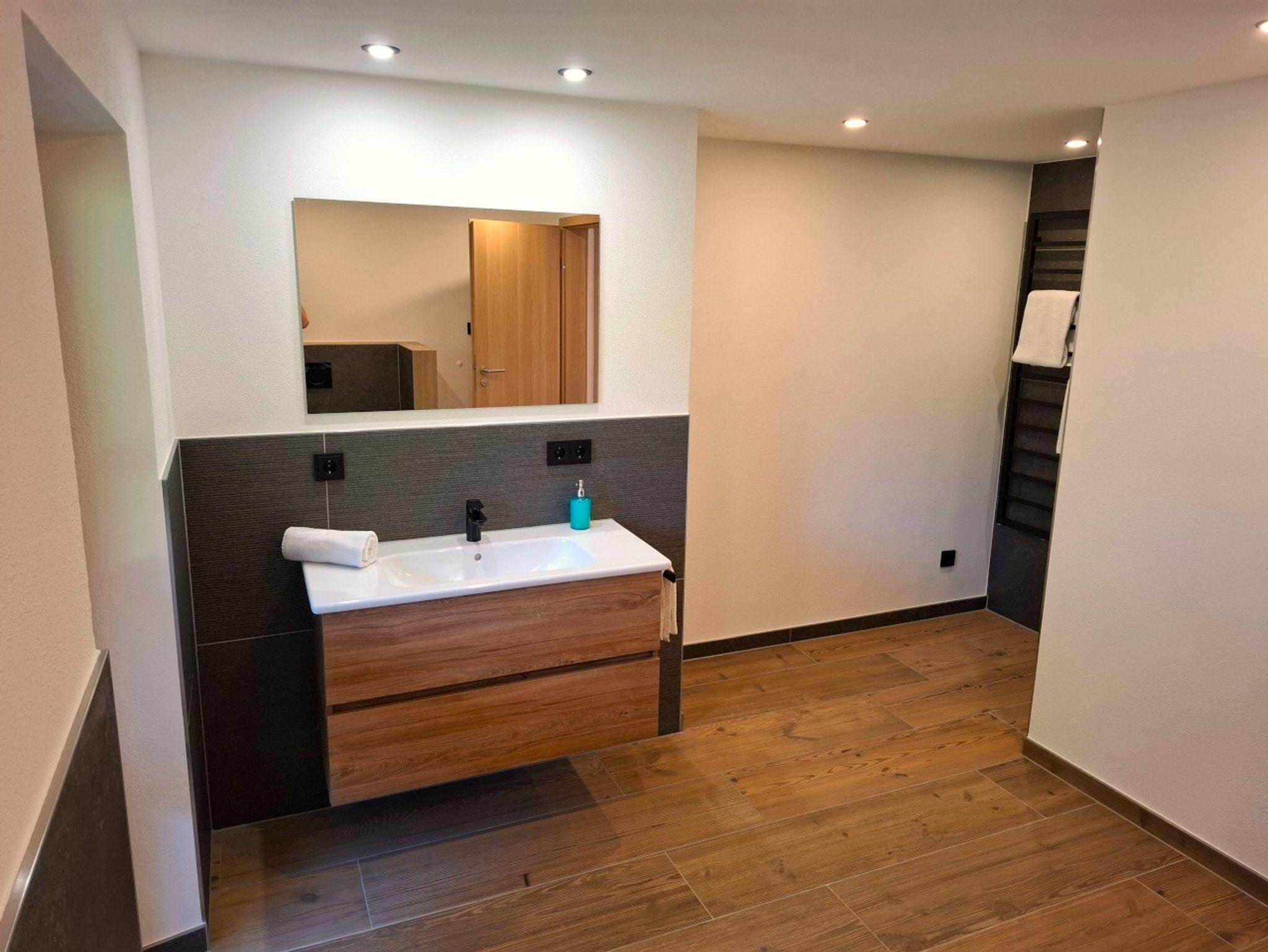 Schöne, ruhige und geräumige Ferienwohnung mit separatem Außentreppen-Zugang. Separates Wohnzimmer mit Schlafcouch und Satelliten-TV, zur Südseite gelegen. Die Wohnung verfügt über einen umlaufenden Balkon mit Sitzgelegenheit und herrlicher Aussicht. Küche mit Spülmaschine, Elektroherd, Backofen, Kühlschrank, Mikrowelle, Toaster, Kaffeemaschine, Eierkocher, Wasserkocher, Kochutensilien, Satelliten-TV und Radio. Badezimmer mit Dusche, WC, Waschtisch und Fön. Schlafzimmer mit Doppelbett, Kleiderschrank, Sitzgelegenheiten und Wecker. Kostenloses WLAN, PKW-Stellplatz, Möglichkeit zum Unterstellen von Fahrrädern.