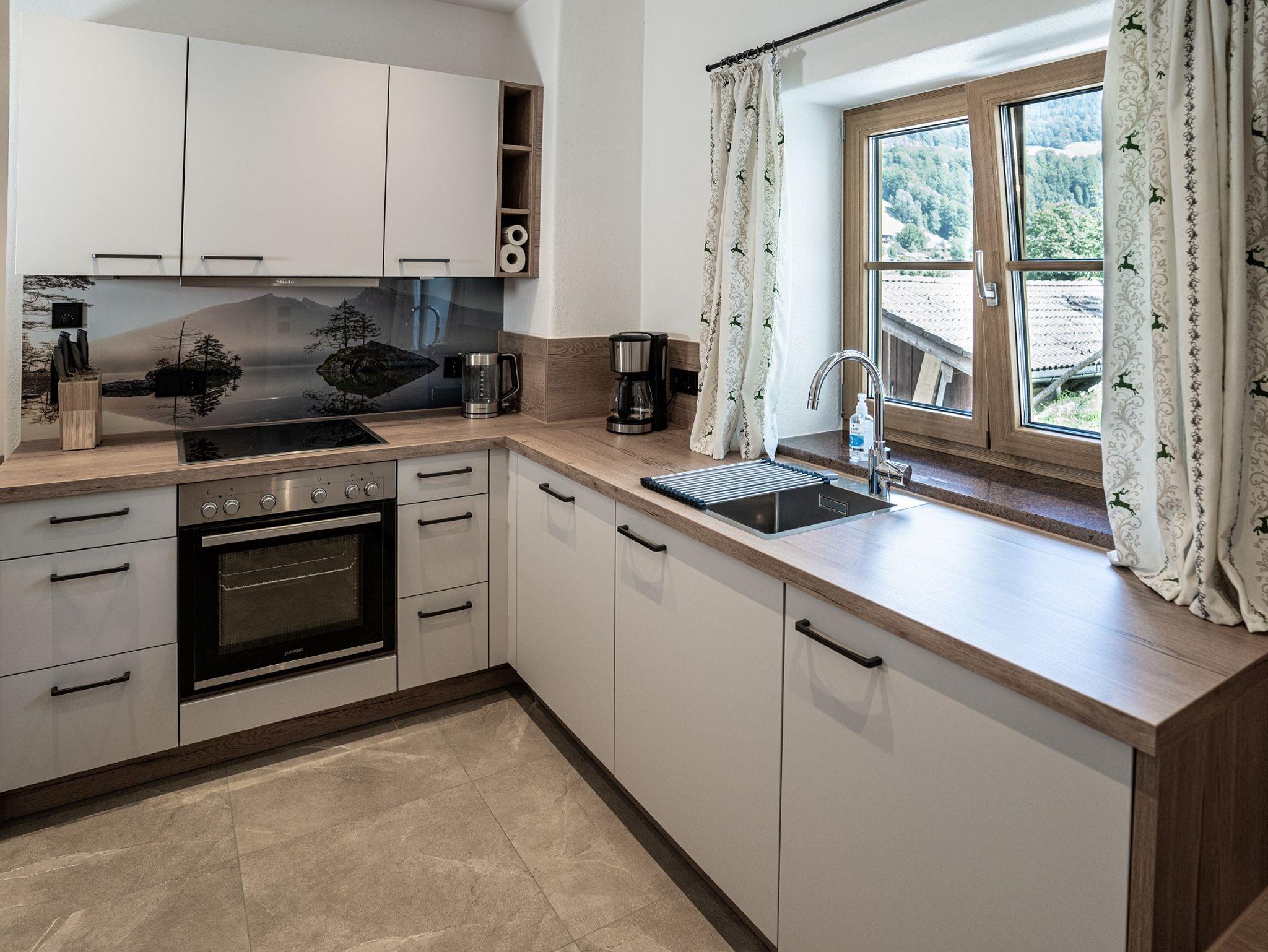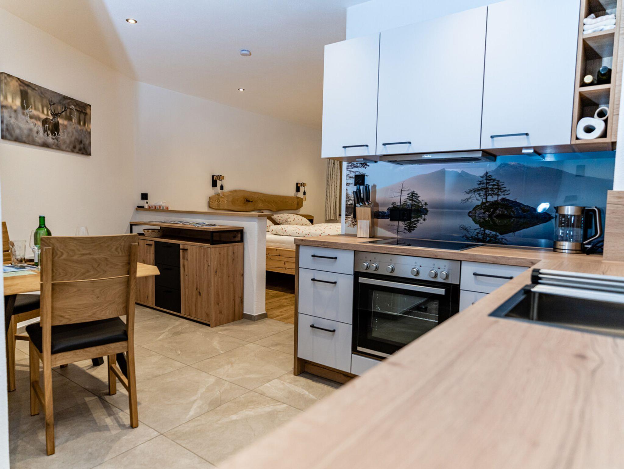 die Ferienwohnung 'Beim Katherl' befindet sich im 1. Stock und verfügt über einen möblierten Balkon mit wunderschönem Ausblick zur Pfarrkirche St. Sebastian. Vollausgestattete Küche mit Geschirrspüler und kleinen Essbereich. Kombinierter Wohn- / Schlafbereich mit Doppelbett und TV. Fußbodenheizung in der kompletten Wohnung und Badezimmer mit großer Regendusche. Dazugehöriger Parkplatz und separater abschließbarer Abstellraum für Fahrräder, Ski oder Schlitten.