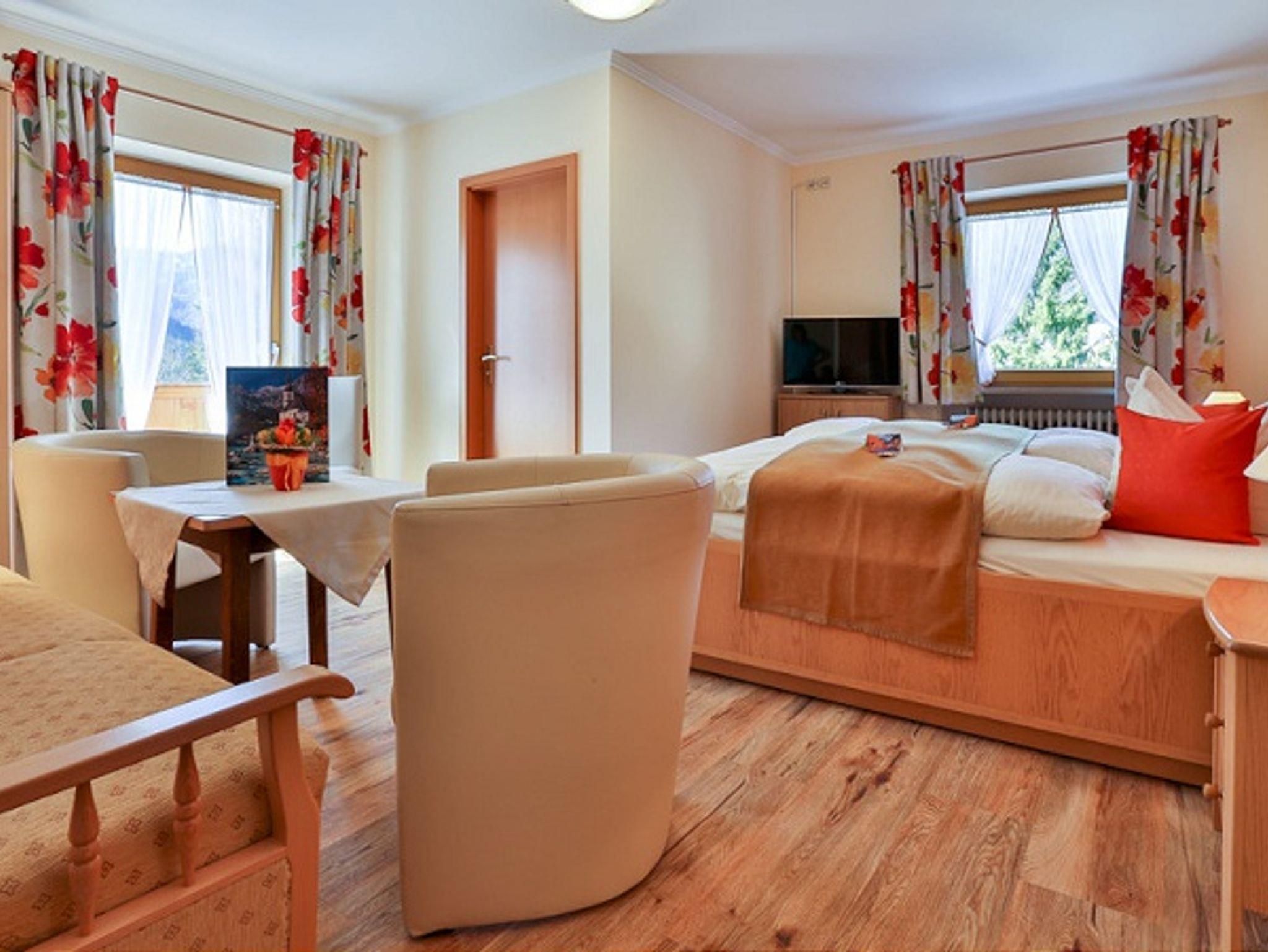 Erfrischendes Design und liebevoll gestaltete Nichtraucher-Doppelzimmer (25qm) Modell Mordaualm mit Nachmittagssonne