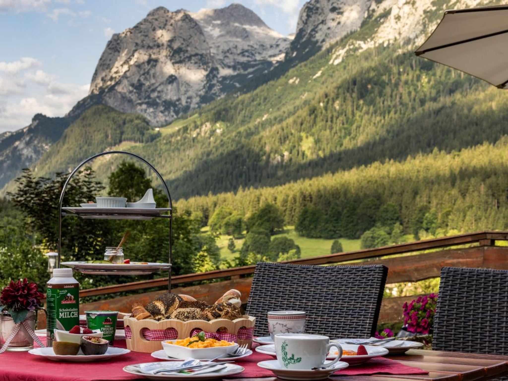 Auf 900m oberhalb des Ramsauer Tales am Fuße des Watzmanns mit einem sagenhaften und sonnigen Blick über die ganze Bergwelt bieten wir Ihnen Wohlig schlafen - Ausgiebig frühstücken - Genussvoll aktiv sein. Unsere im erfrischendem Design eingerichteten Nichtraucher- Komfortzimmer mit einem sonnigen und majestätischen Blick auf Watzmann, Hochkalter und Reiteralpe, bieten einen zeitgemäßen Standard Mit viel Liebe zum Detail, Herz und Leidenschaft begrüßen wir Hobby-Alpinisten, Wiederholungstäter und diejenigen die wir noch begeistern dürfen. Das Frühstück ist unsere großen Leidenschaft und wird jeden Tag individuell mit regionalen Produkten aus der Region mit viel Liebe zubereitet. Sie können dies auf unserer sonnigen Panoramaterrasse oder in unserem urigen Frühstücksraum genießen. Als besonderen Service für unsere Gäste steht ihnen unser Rastplatz mit kostenloser Tee/Kaffeebar, Gästekühlschränken, Bibliothek, Getränkeangebot zur Verfügung. WLAN im Haus kostenlos. Bestpreisgarantie bei Direktbuchung über Homepage oder per Email unter , es lohnt sich!! Oder einfach anrufen und sofort buchen. Wir freuen uns auf Sie!