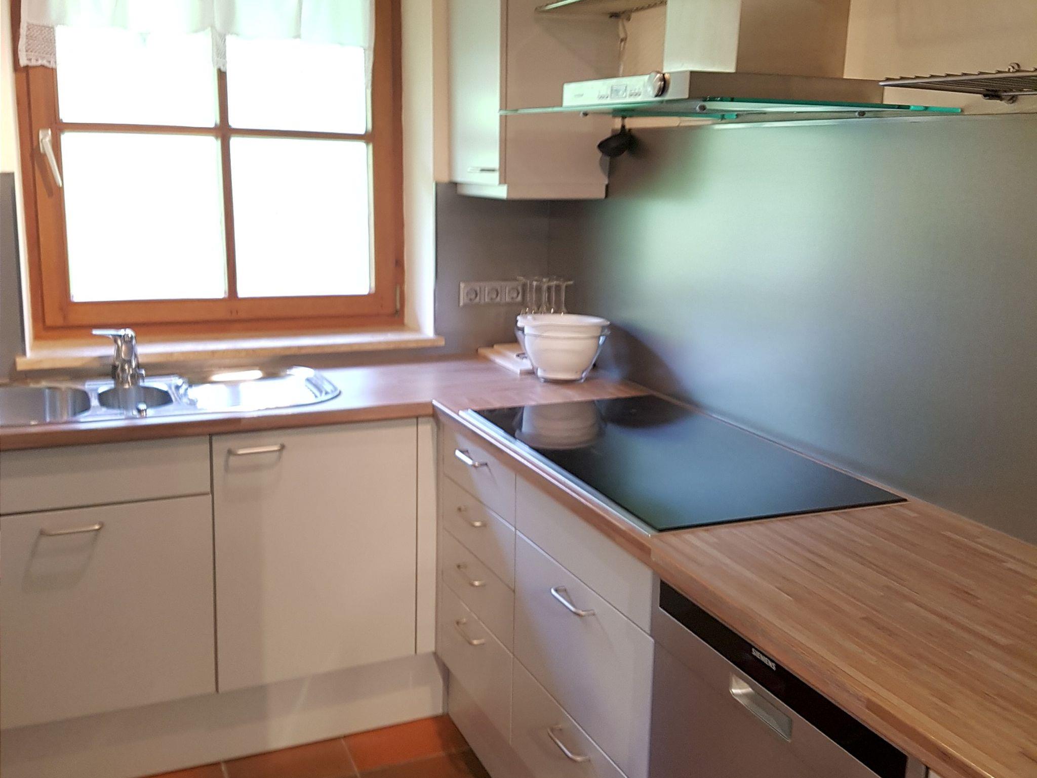 Ausstattung:Wohnzimmer mit Couch (ausziehbar zur Schlafcouch = 1,80 x 2 Meter), TV, Küche mit großem Esstisch, Kühlschrank - Gefrierkombination, Induktionskochfeld, Backofen, Spülmaschine, Wasserkocher, Kaffeemaschine, Mikrowelle, Besteck, Geschirr, Geschirrtücher Schlafzimmer mit Doppelbett (1,80m x 2,00m), Kleiderschrank, abdunkelnde Vorhänge, Bettwäsche vorhanden, Bad mit Dusche, WC, Handtücher, Fön, Balkon. Kostenloses WLAN, kostenfreier Parkplatz am Haus. Maximalbelegung 4 Personen, Nichtraucherwohnung, Hunde erlaubt, viele Wandermöglichkeiten direkt ab Haus/Bushaltestelle: 50 m entfernt