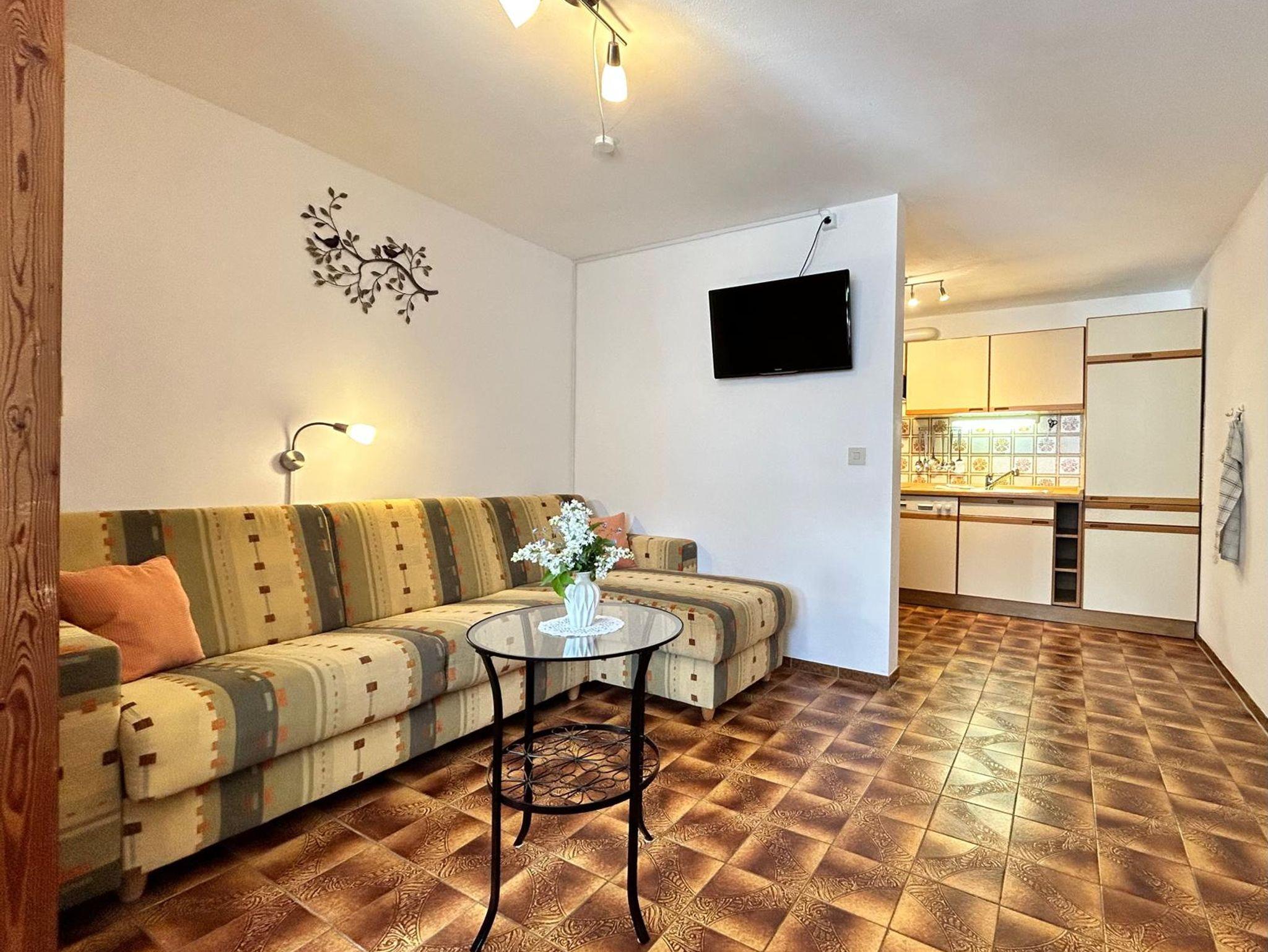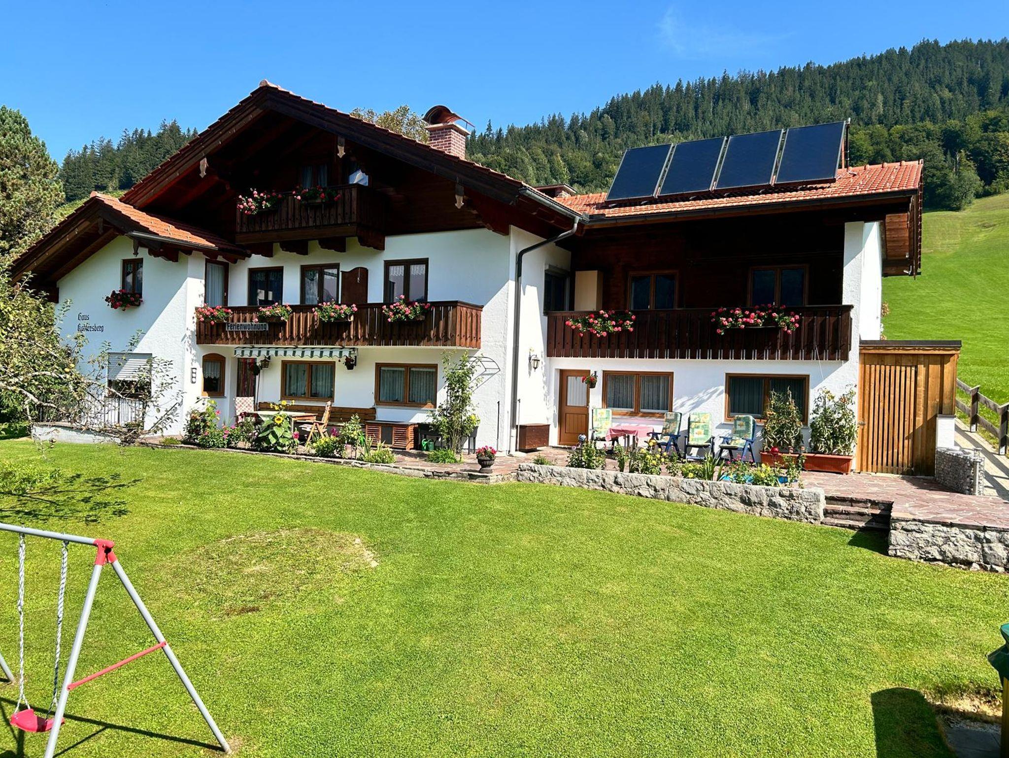 Unser Haus liegt in sonniger, mittlerer Lage mit herrlichem Blick auf die Berge.Wir bieten Ihnen eine freundlich eingerichtete Ferienwohnung für 1 - 4 Personen, nach Süden ausgerichtet. Sie besteht aus einem Wohnraum mit komfortabler Schlafgelegenheit, einer komplett eingerichteten Küche, einem separatem Schlafzimmer, einer großen Dusche mit WC und einer Terrasse mit Sitzmöglickeit. Von unserem Haus aus können Sie schöne Wanderungen, Ausflüge, Radtouren und Vieles mehr unternehmen.