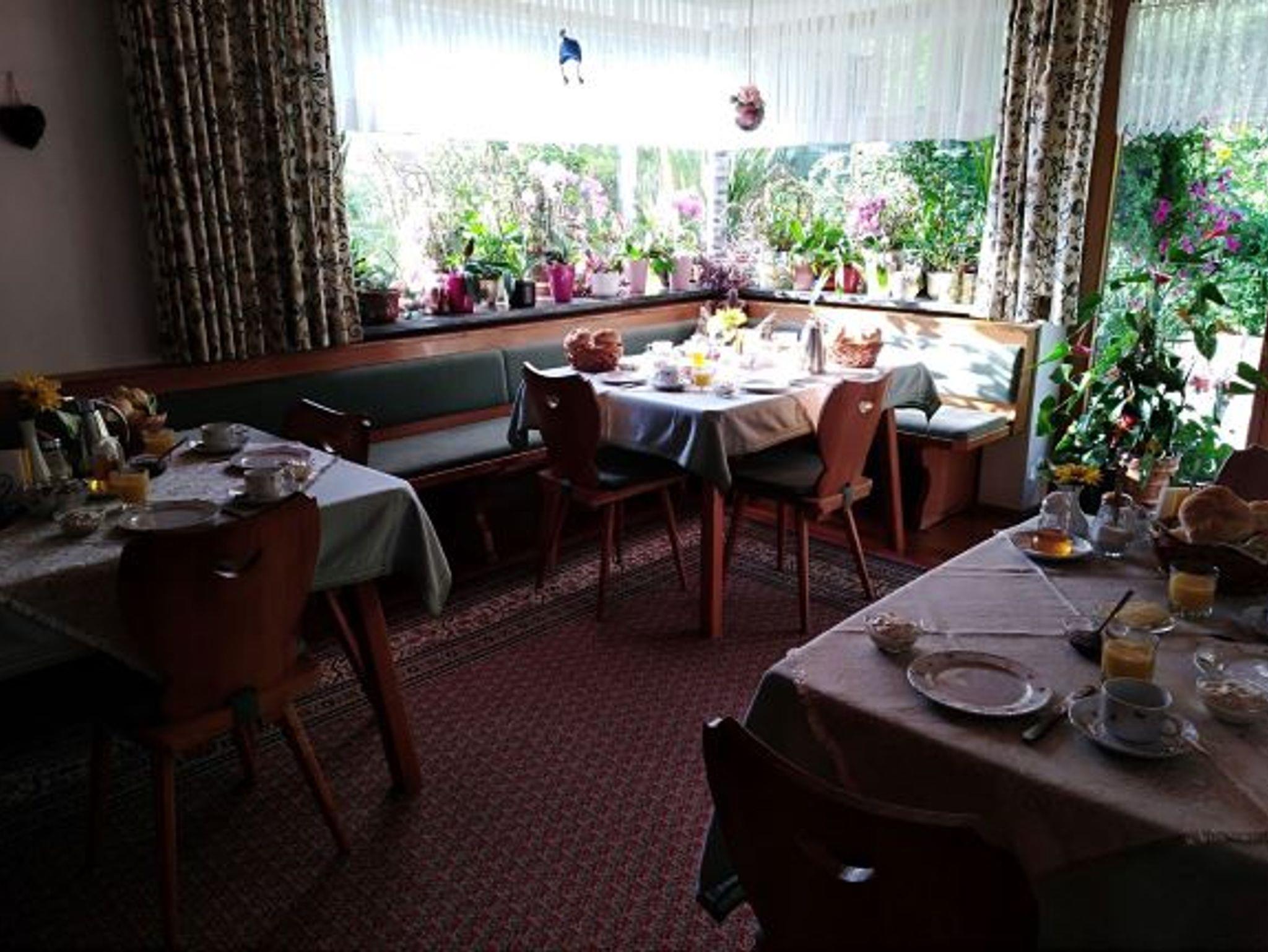 Lassen Sie jeden Tag im Frühstücksraum bei einem Großen leckeren Frühstück gut beginnen, genießen Sie dabei den herrlichen Blick auf Watzmann und Kehlstein.
