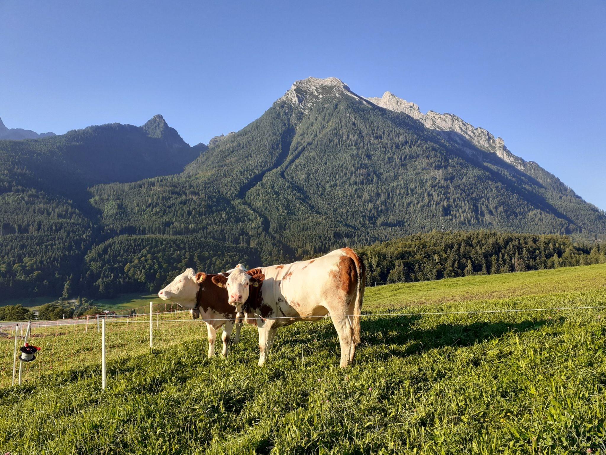 Unser Hof ist bereits seit Generationen in Familienbesitz. Wir leben, arbeiten und wachsen mit unseren Tieren und schaffen uns gemeinsam ein kleines Paradies. Ferienwohnung 1 befindet sich im Bauernhaus und bieten einen unvergesslichen Panoramablick der zum wandern und/oder einfach zum genießen einlädt. Vom Balkon aus der auf der Westseite des Gebäudes liegt hat man einen herrlichen Blick über unsere Felder bis zum Steinberg, Hochkalter und die Reiter Alpe. Ein perfekter Ort um die Seele baumeln zu lassen und im Sommer die Gesellschaft von weidenden Rindern und Ziegen zu genießen. Ein Gefühl wie auf der Alm!! Natürlich bietet auch der Frühling, Herbst und Winter unvergesslich schöne Eindrücke.
