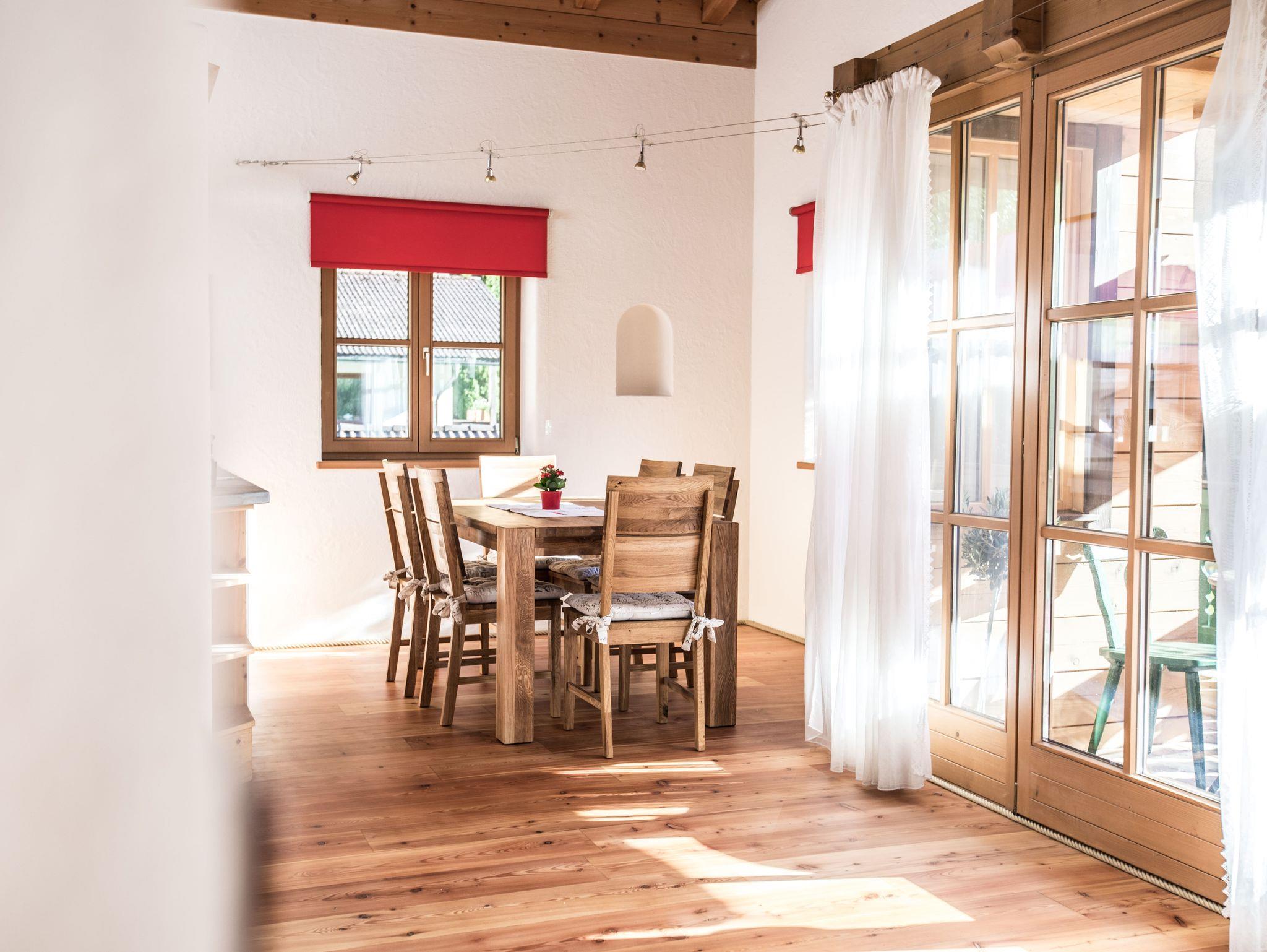Das Berg - Loft Ramsau: Komfort für Ihren Urlaub im Berg - Loft für 1 - 6 Personen. Das „Berg - Loft“ ist eine Komfort-Ferienwohnung im 1. Stock und bietet mit 2-3 Schlafzimmern und einer Größe von 130-170 qm viel Platz für bis zu 6 Personen. Die Ferienwohnung für bis zu 6 Personen ist aufgeteilt in: • Wohnbereich mit großer Wohnlandschaft, Couchtisch, TV mit Radio, Bluetooth Lautsprecher, W-LAN Internetzugang • Holz beheizter Kachelofen mit kleiner Ofenbank und Lesetisch • Balkon mit Freisitz und Abendsonne (Bergblick) • Essbereich mit großem Esstisch und 6 Stühlen • Küchenbereich, Küche komplett ausgestattet mit 4-Platten-Kochfeld, Backrohr, Dunstabzug, Mikrowelle, Spülmaschine, Kühlschrank mit Gefrierfach, Filterkaffeemaschine, Espressokocher, Kapselmaschine, Milchschäumer, Toaster, Wasserkocher • 3 Schlafzimmer mit je einem Doppelbett (180x200) komplett ausgestattet inkl. Bettwäsche, einmal mit Balkon (Ostseite mit Morgensonne). • Bad mit Waschbecken, Bad Schrank, Dusche, WC, Fön, Handtücher • Großer Abstell- und Trockenraum mit Waschmaschine • Gästeparkplatz • Liegewiese. Für Ihre Wertsachen ist ein Zimmersafe vorhanden. Haustiere können nicht mitgebracht werden. Nichtraucherwohnung.