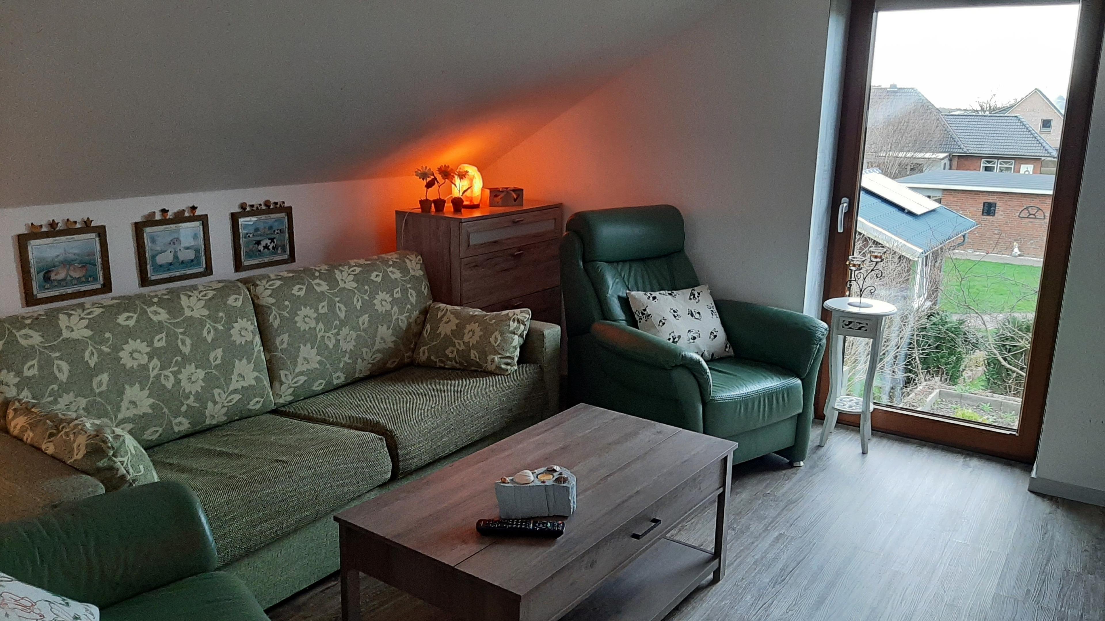 Ihre Wohnung befindet sich im Obergeschoss unseres Holzhauses in ruhiger Lage mit Blick in die nordfriesische Landschaft.