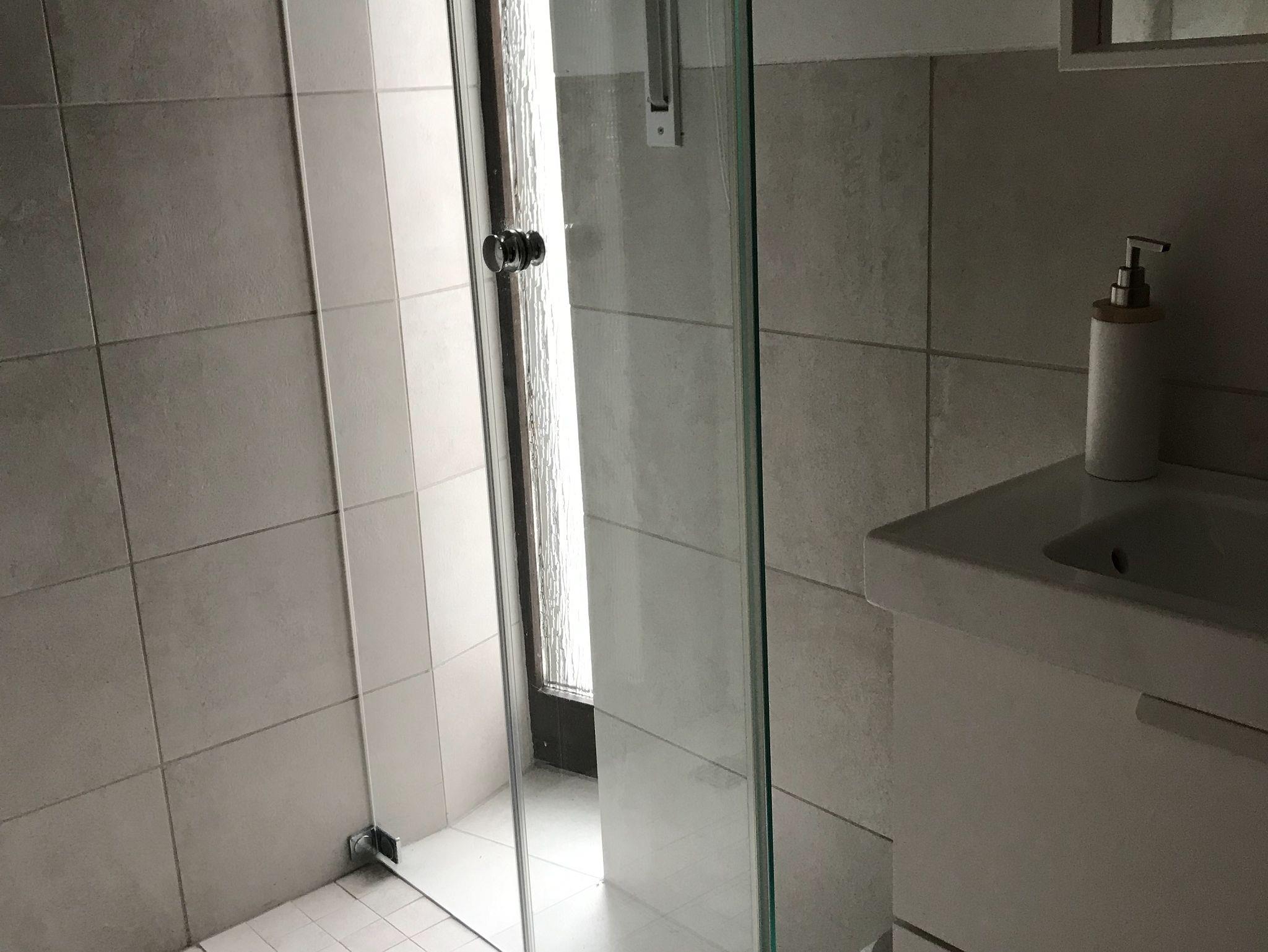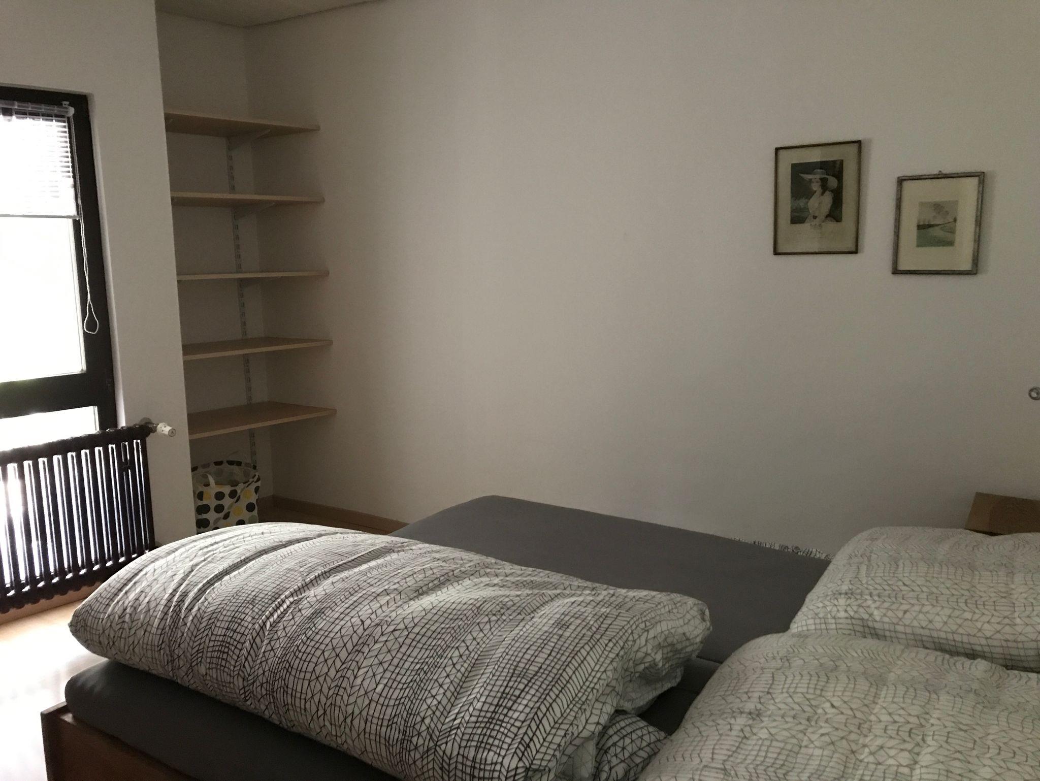 Dusche und WC sind getrennt und frisch renoviert. Das Schlafzimmer hat ein Doppelbett. Handtücher und Bettwäsche sind vorhanden.