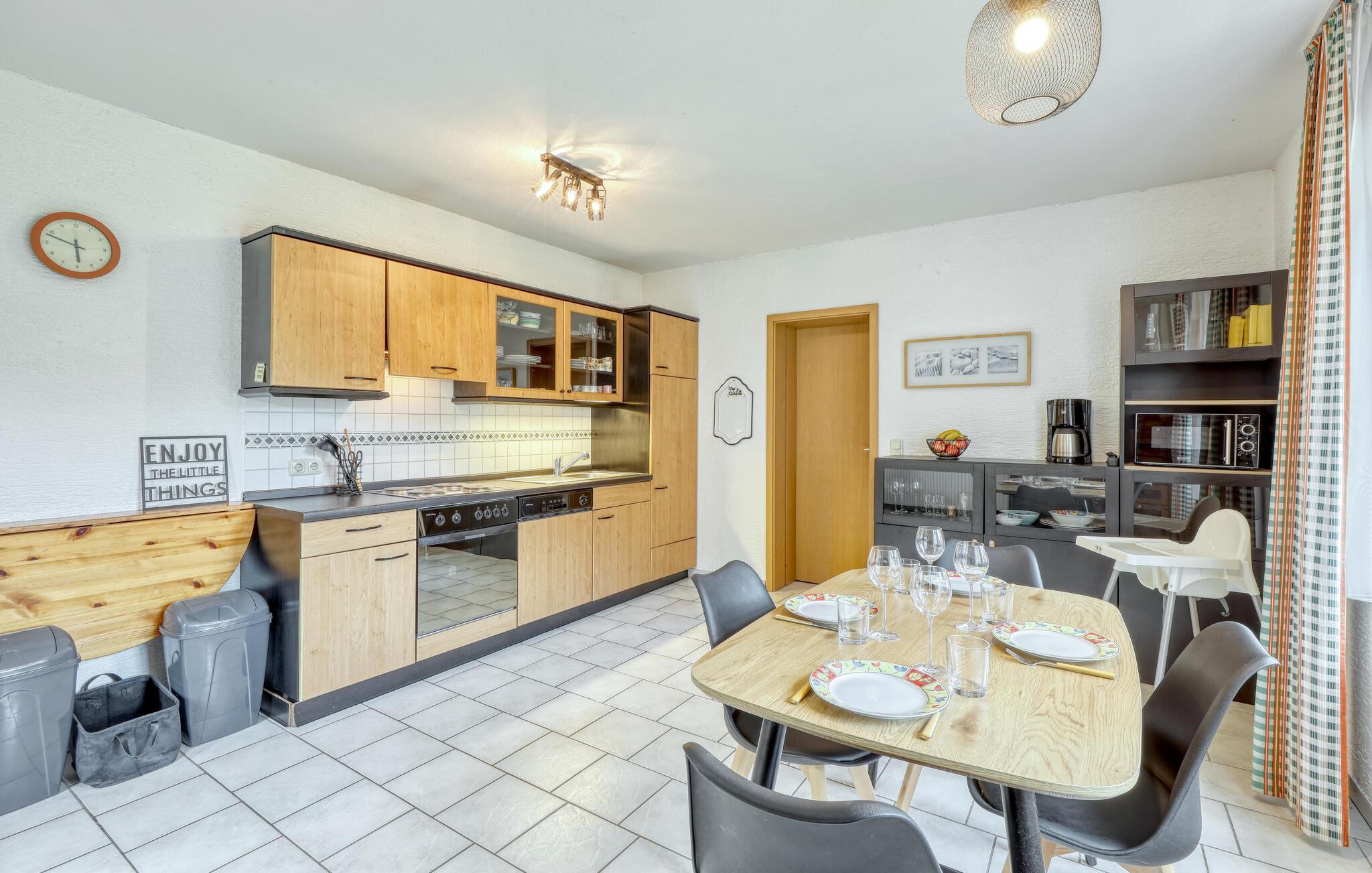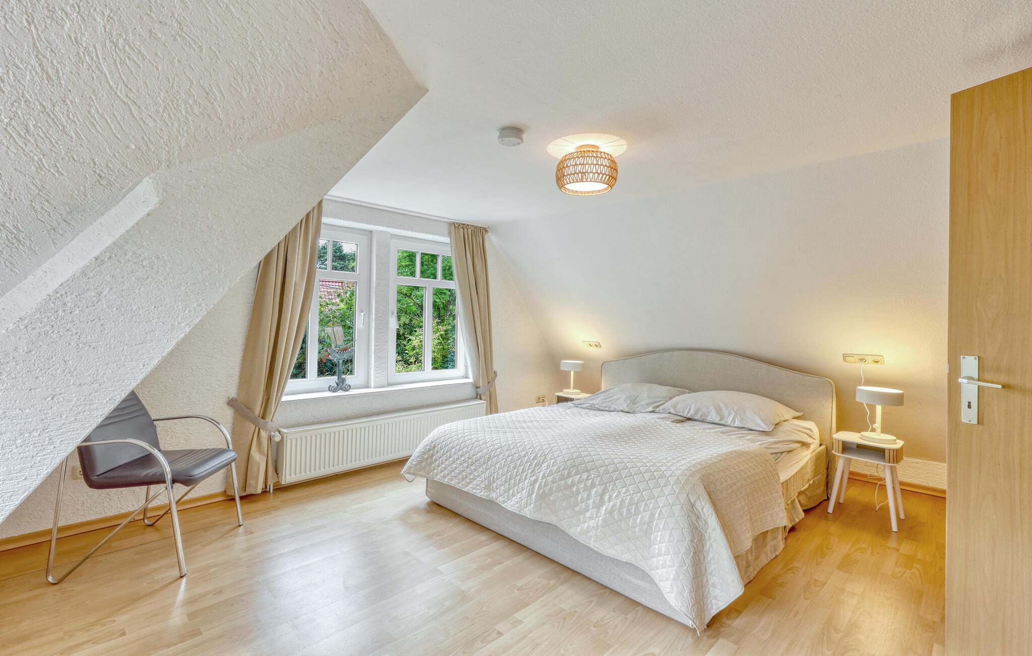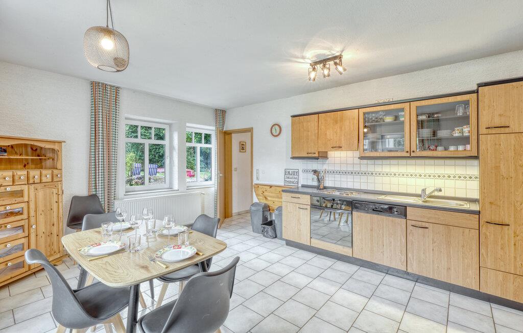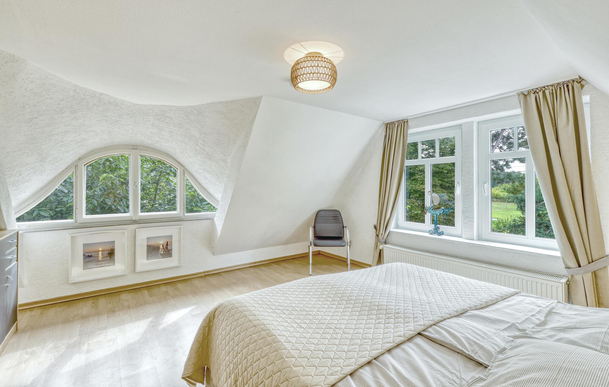 Det lyse interiør byder på komfortable siddepladser i stuen. Brug pejsen til at skabe en varm atmosfære på kølige dage og sæt jer til rette med en god bog eller foran fjernsynet. Tilbered jeres måltider i det rummelige køkken med moderne apparater og nyd dem ved spisebordet med udsigt over haven.