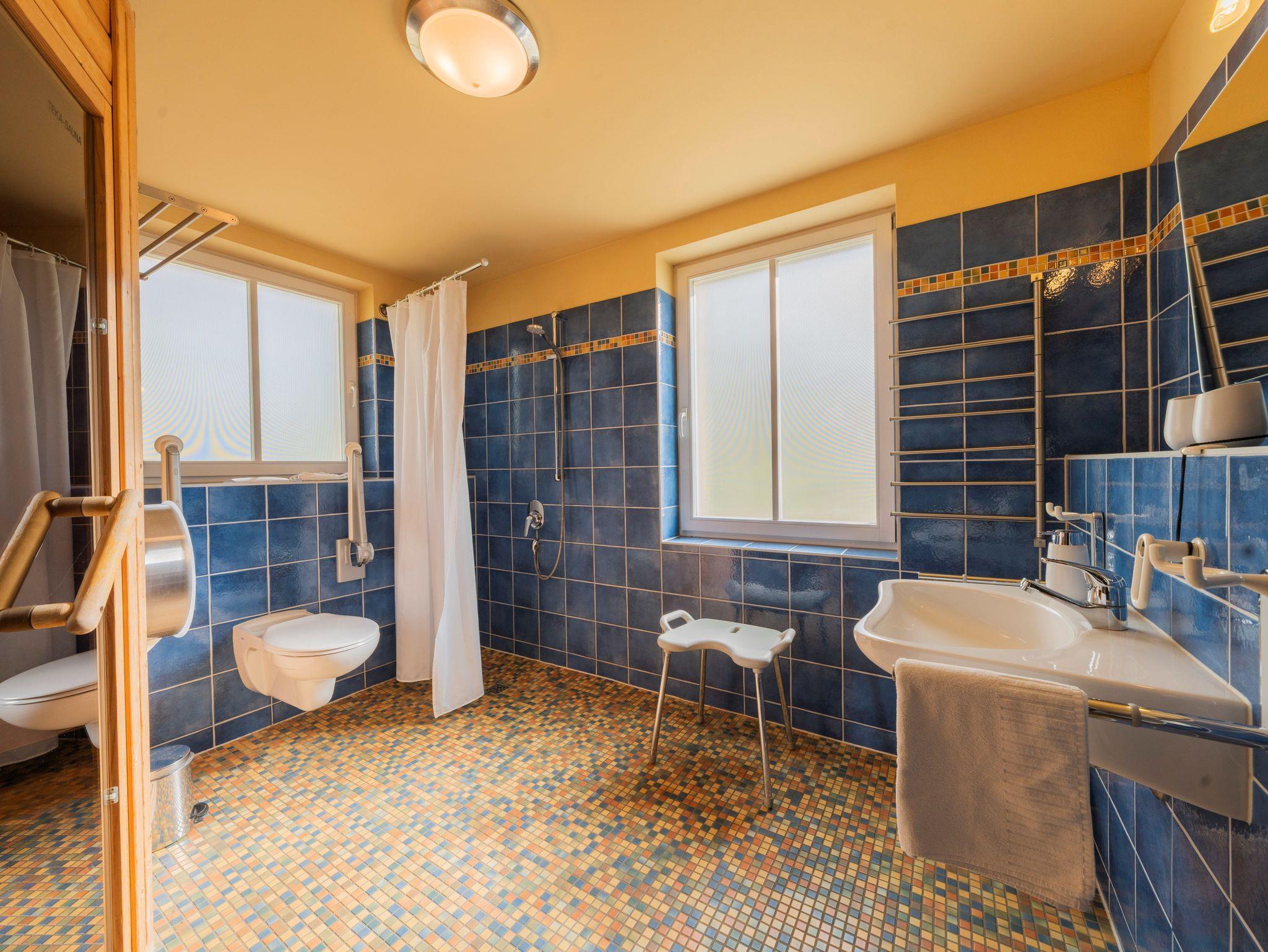 • Saunabad: Befahrbare Dusche und Sauna (nicht befahrbar) für Wellnessmomente