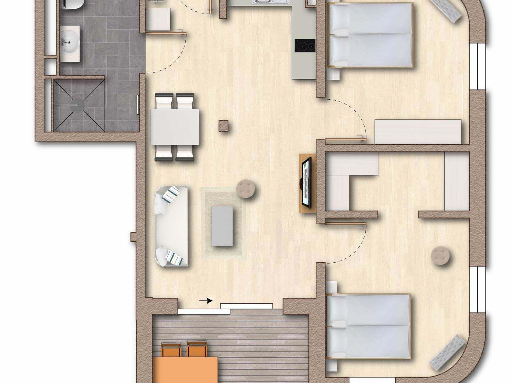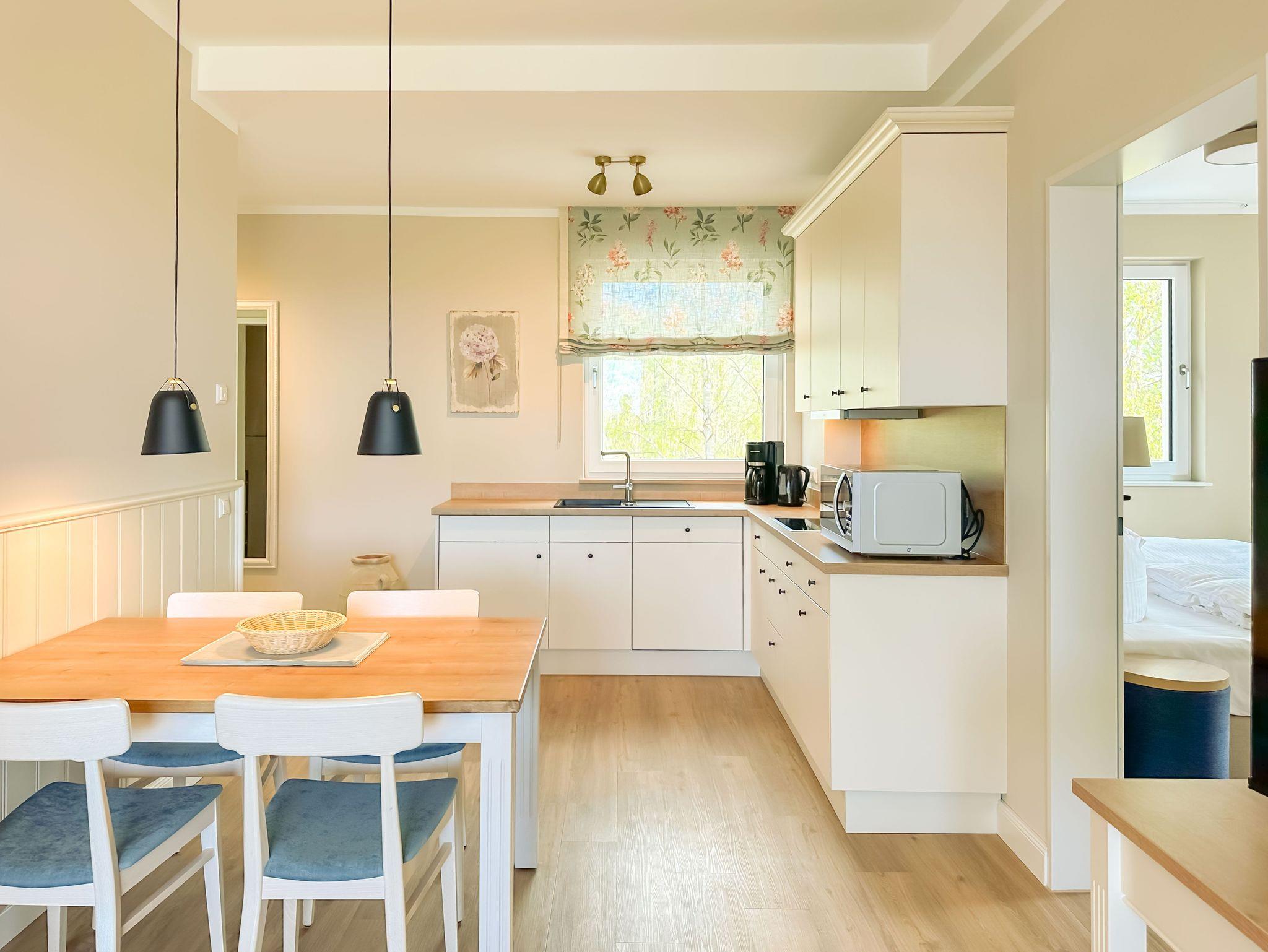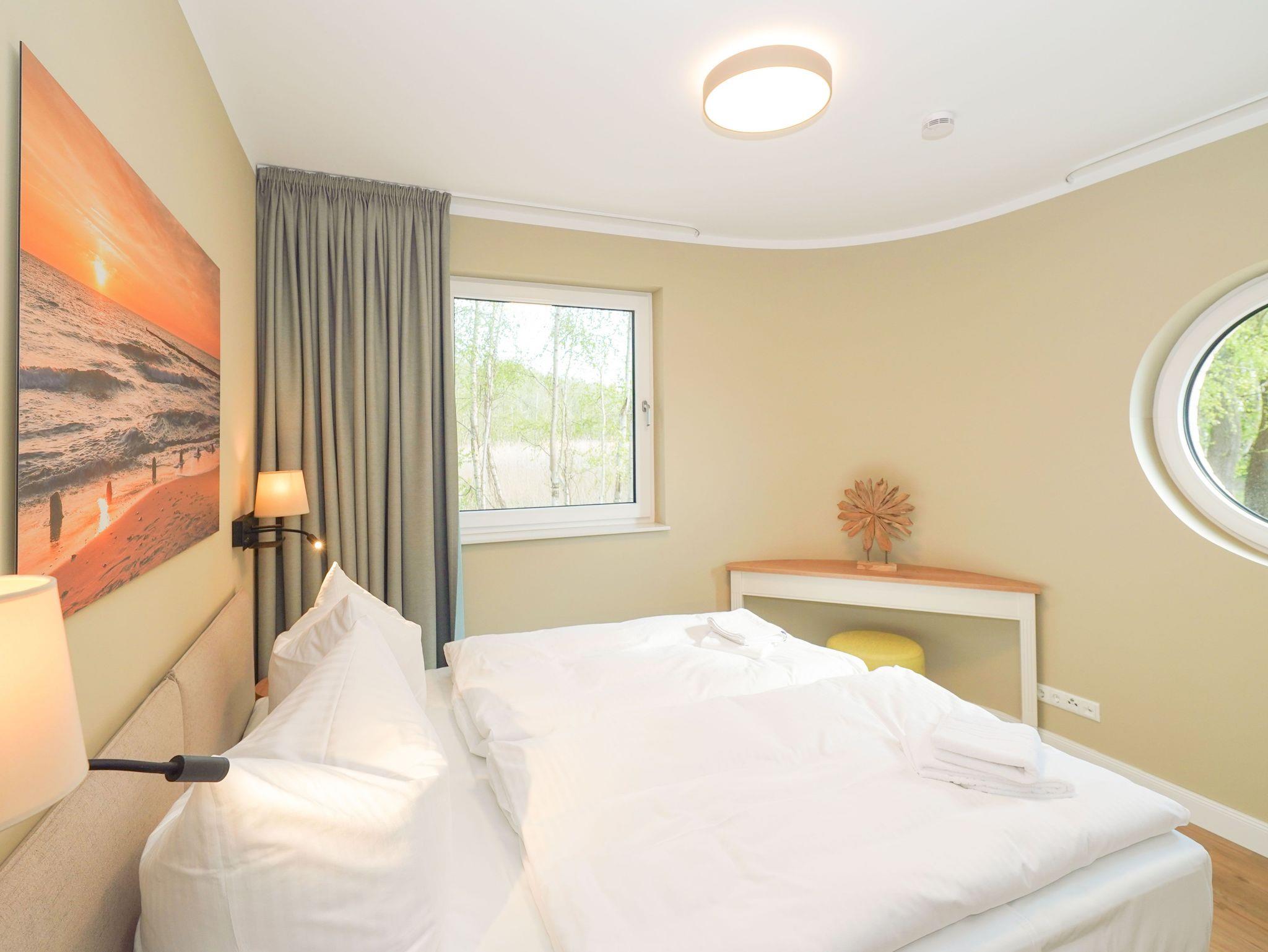 75m² Suite im EG, barrierefrei, bis zu 4 Personen. Schlafzimmer mit Doppel-Boxspringbett (180x200), 15 m² Veranda mit einmaligem Blick auf den Hafen. Nichtraucher-Suite. Hund möglich: 15€/Tag. Parkplatzund WLAN sind inklusive.Dachsauna mit Terrasse, Fitnessraum und Frühstück sind vor Ort zu buchbar. Wäschepaket und Endreinigung einmalig 139,- €.