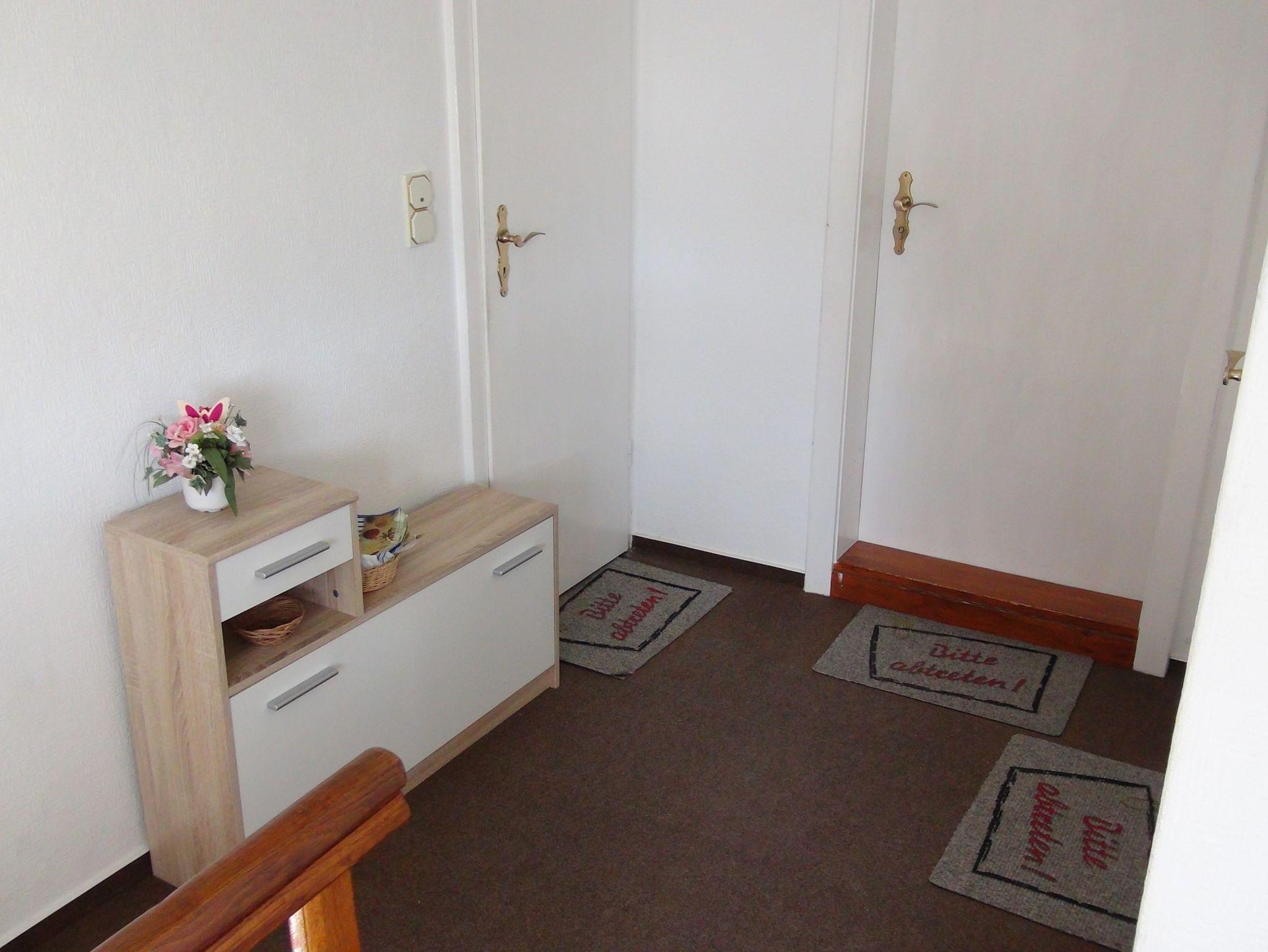 Die 1-Raum-Nichtraucher-Ferienwohnung befindet sich in südlicher Lage im Obergeschoss des Wohnhauses. Ein Treppenhaus führt zu zwei Ferienwohnungen in der oberen Etage. Vor dem Hauseingang und auf dem Grundstück laden Gartenstühle und Gartentische zum Verweilen ein. Auch ein Grill steht zur Nutzung bereit. Rauchen ist vor dem Hauseingang, auf dem Hof oder unter dem Carport möglich.