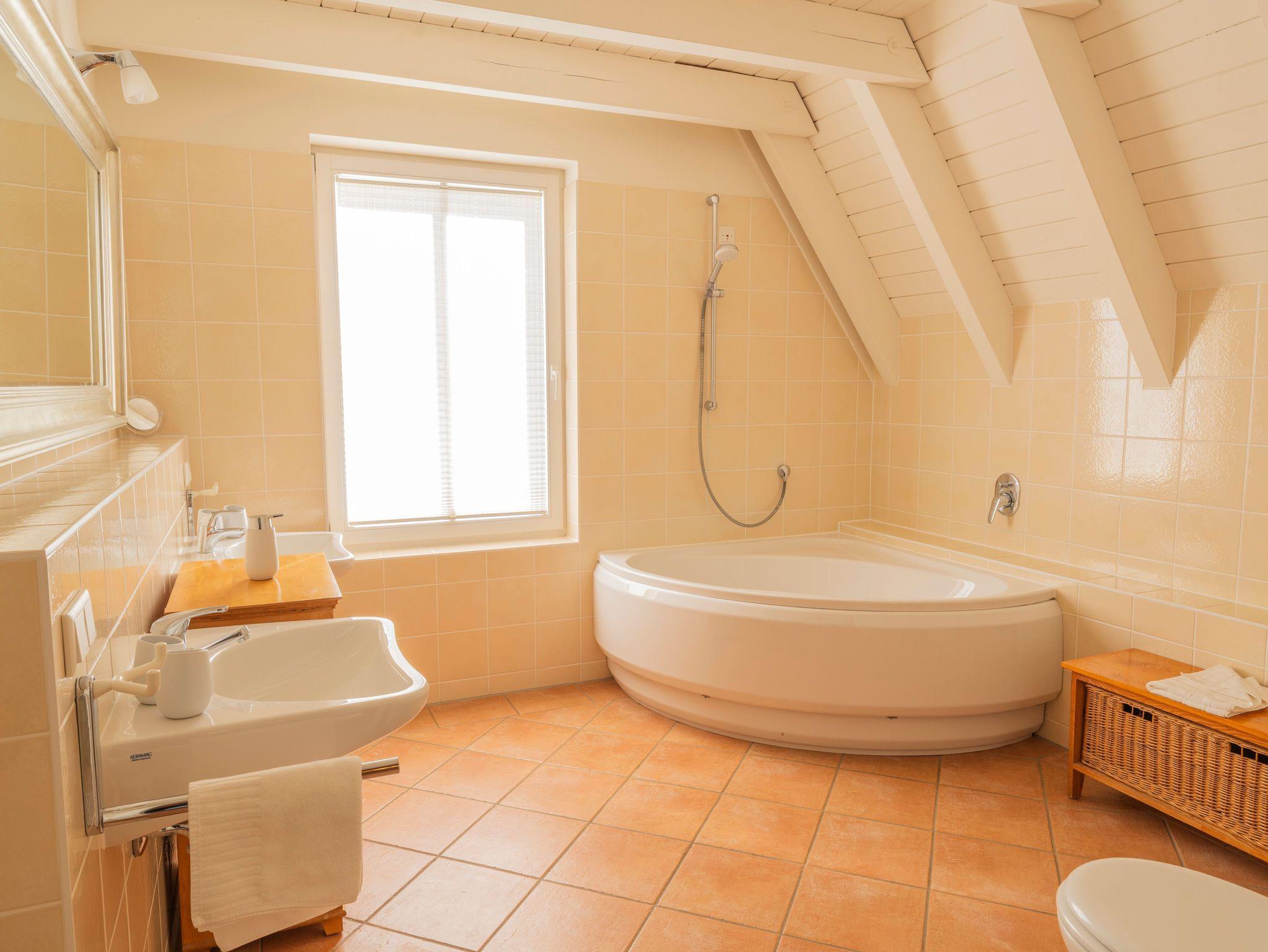 • Geräumiges Badezimmer:[nbsp] Mit Eckbadewanne, Dusche, WC und Bidet