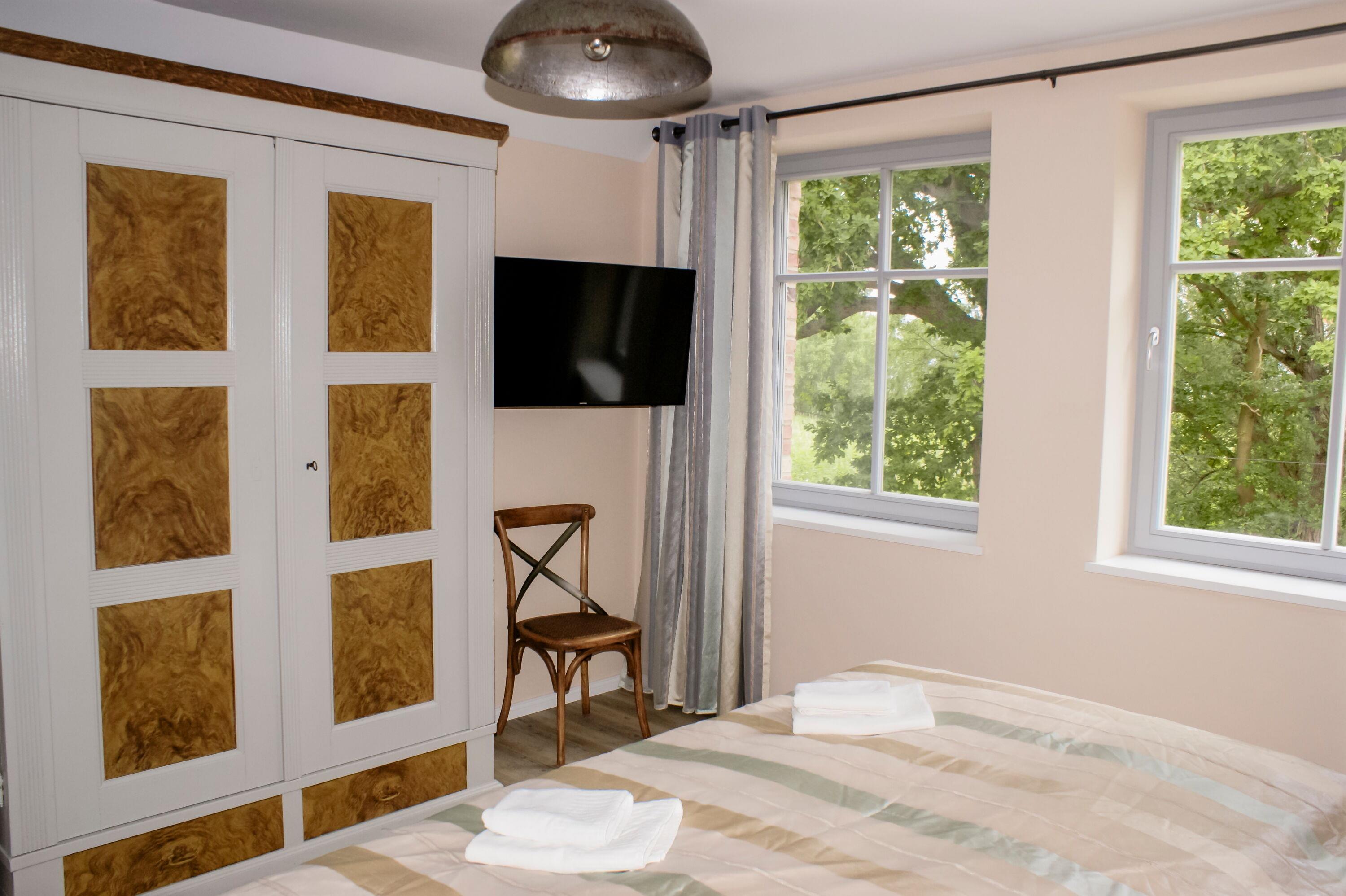 1 Schlafzimmer mit großem Doppelboxspringbett
