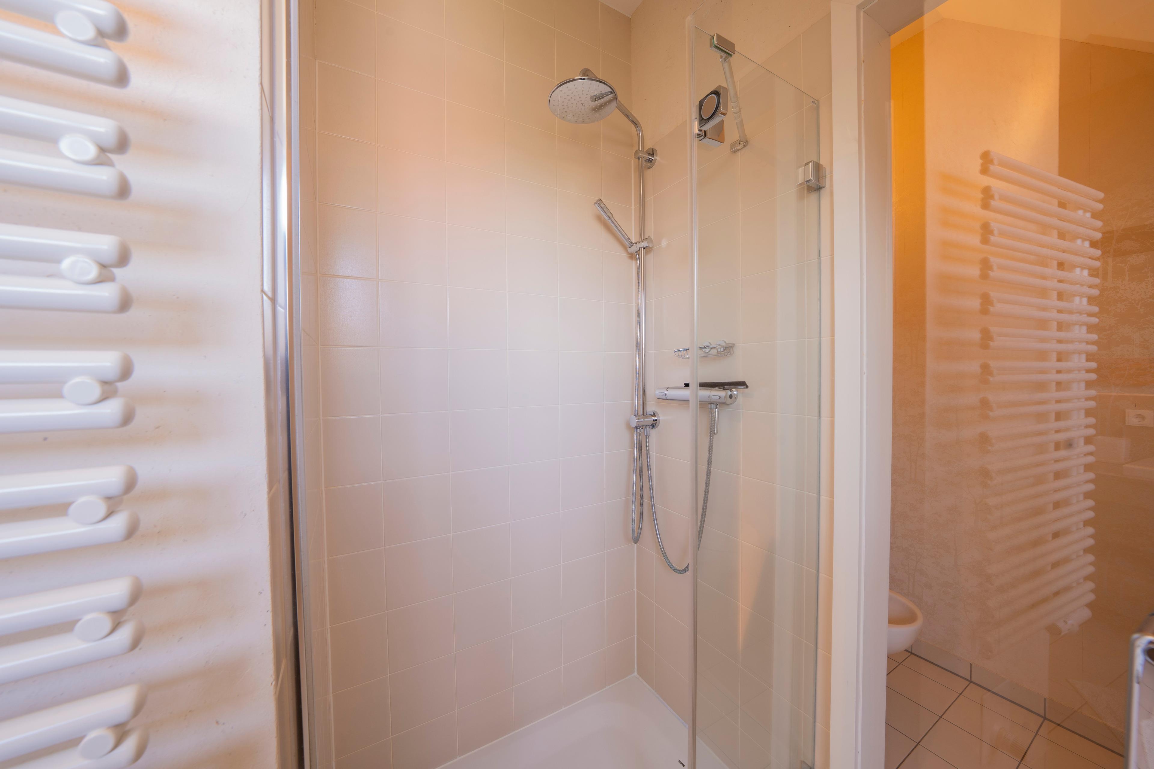 2 luxuriöse Bäder mit Eckbadewanne bzw. Badewanne, Dusche, WC, Waschmaschine und Trockner