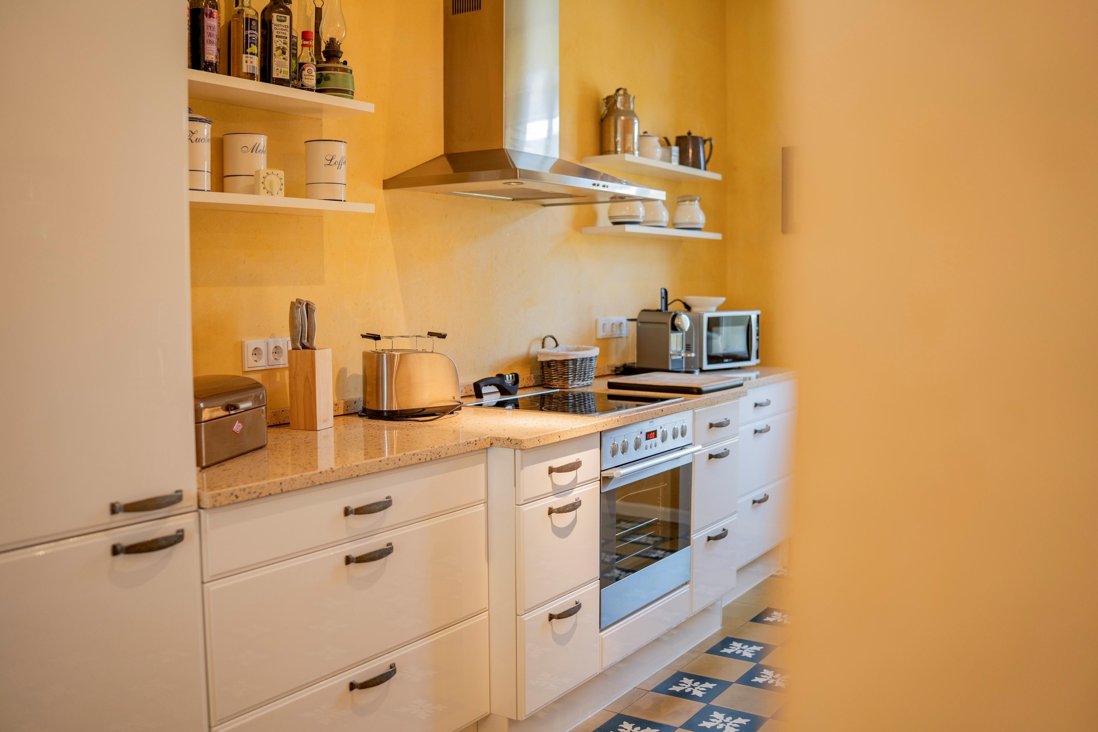 2 voll ausgestattete Küchenzeilen mit Spülmaschine, Backofen, Kaffeemaschine und Toaster