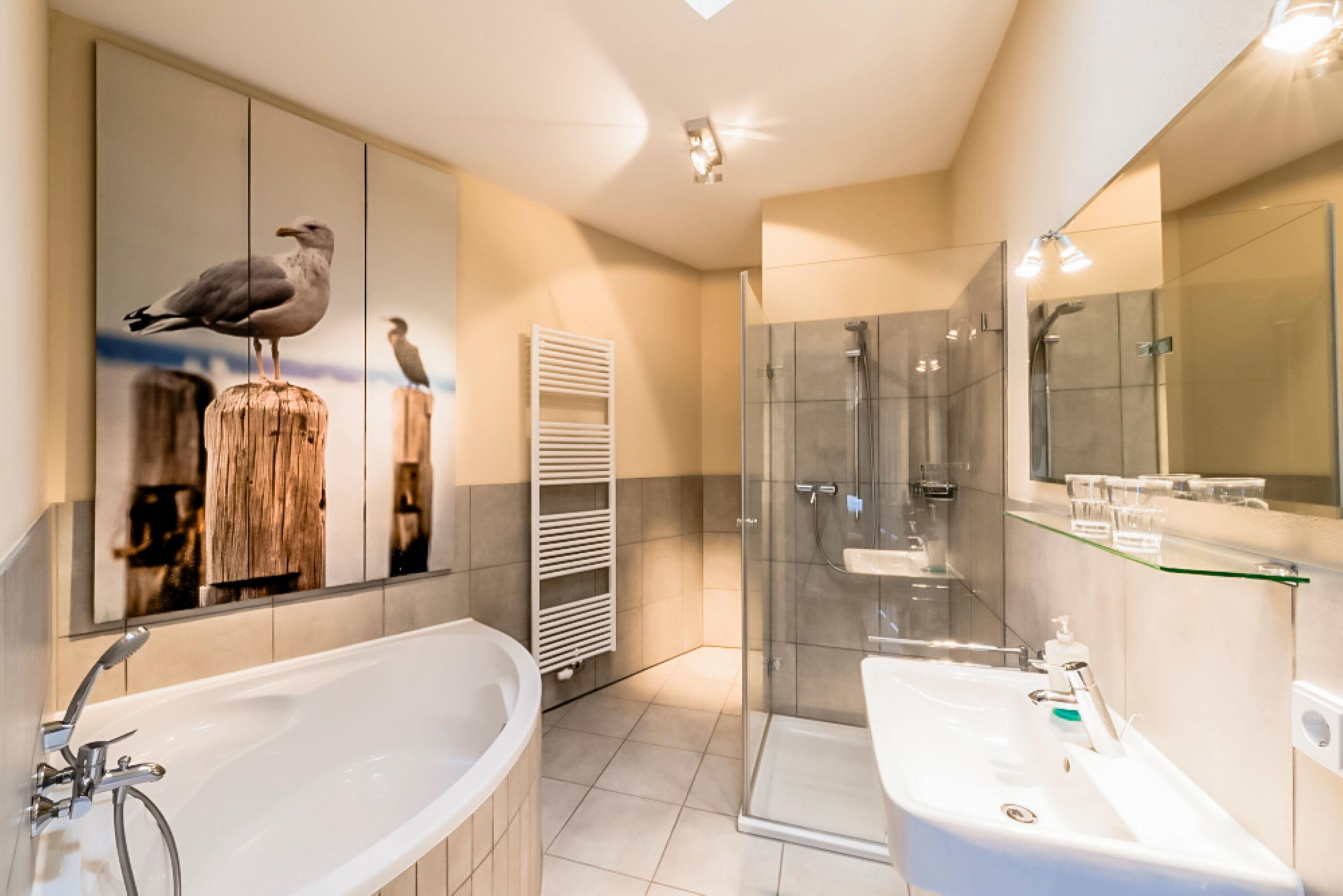 Luxuriöses Badezimmer: Mit Dusche und Eckbadewanne