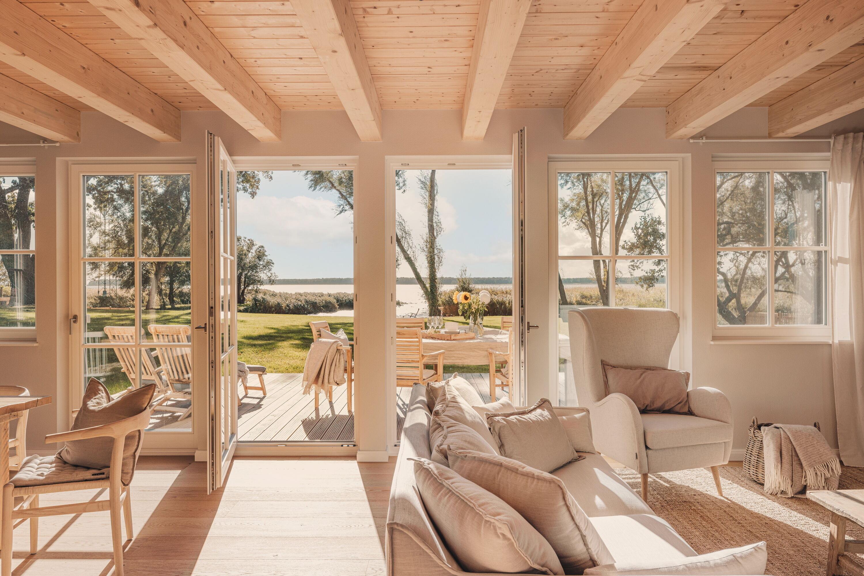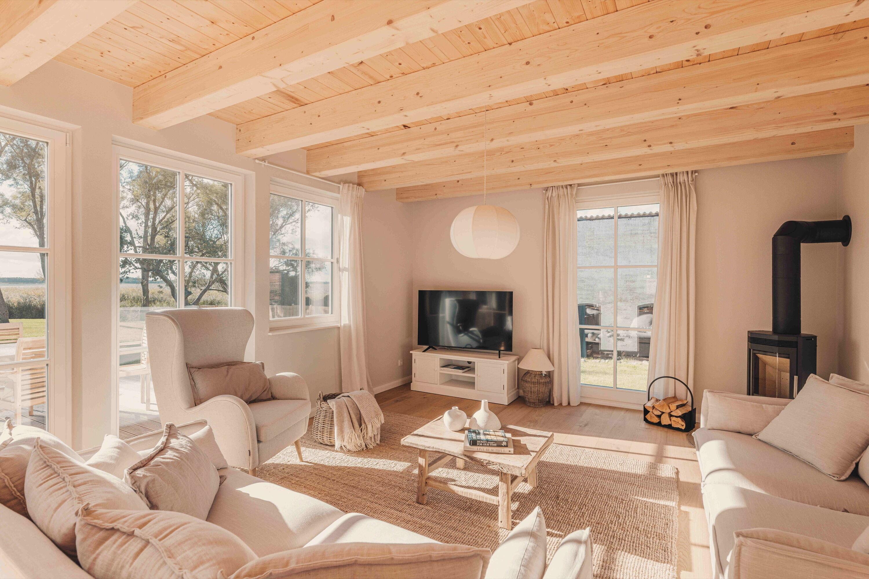 Erleben Sie entspannte Tage voller Komfort und Gemütlichkeit in unserem Premium Ferienhaus direkt am Wasser mit privater Badestelle: Umsorgt mit einem einzigartigen Wohlfühlambiente, verwöhnt mit sanftem Luxus.