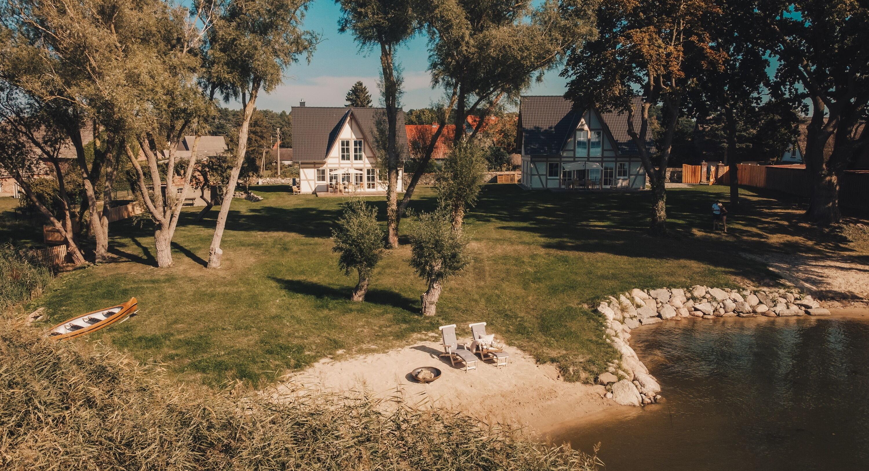 Zum Watermark Usedom gehören zwei exklusive Ferienhäuser direkt am Wasser, das Ferienhaus "Welle" und das Ferienhaus "Woge". Jedes Haus verfügt über eine großzügige Holzterrasse mit Panoramablick auf das Wasser, die weitläufige 3.000 m² große Gartenanlage steht zur gemeinsamen Nutzung zur Verfügung. Sitzmöglichkeiten und Sonnenliegen laden zum Entspannen ein. Ein Grill, eine Feuerschale sowie ein altes Stallgebäude zum sicheren Abstellen von E-Bikes und Fahrrädern stehen unseren Gästen zur gemeinschaftlichen Nutzung zur Verfügung.