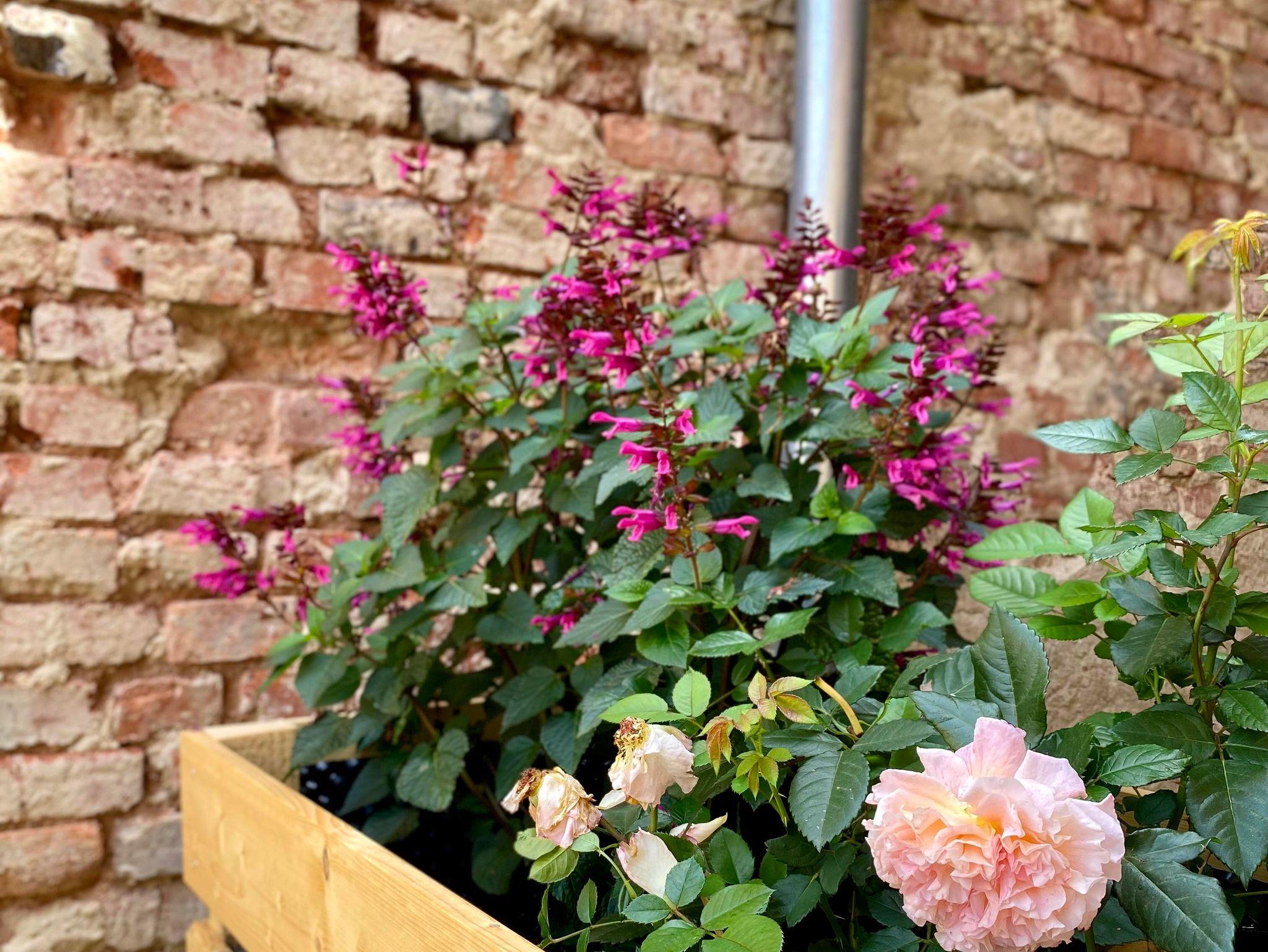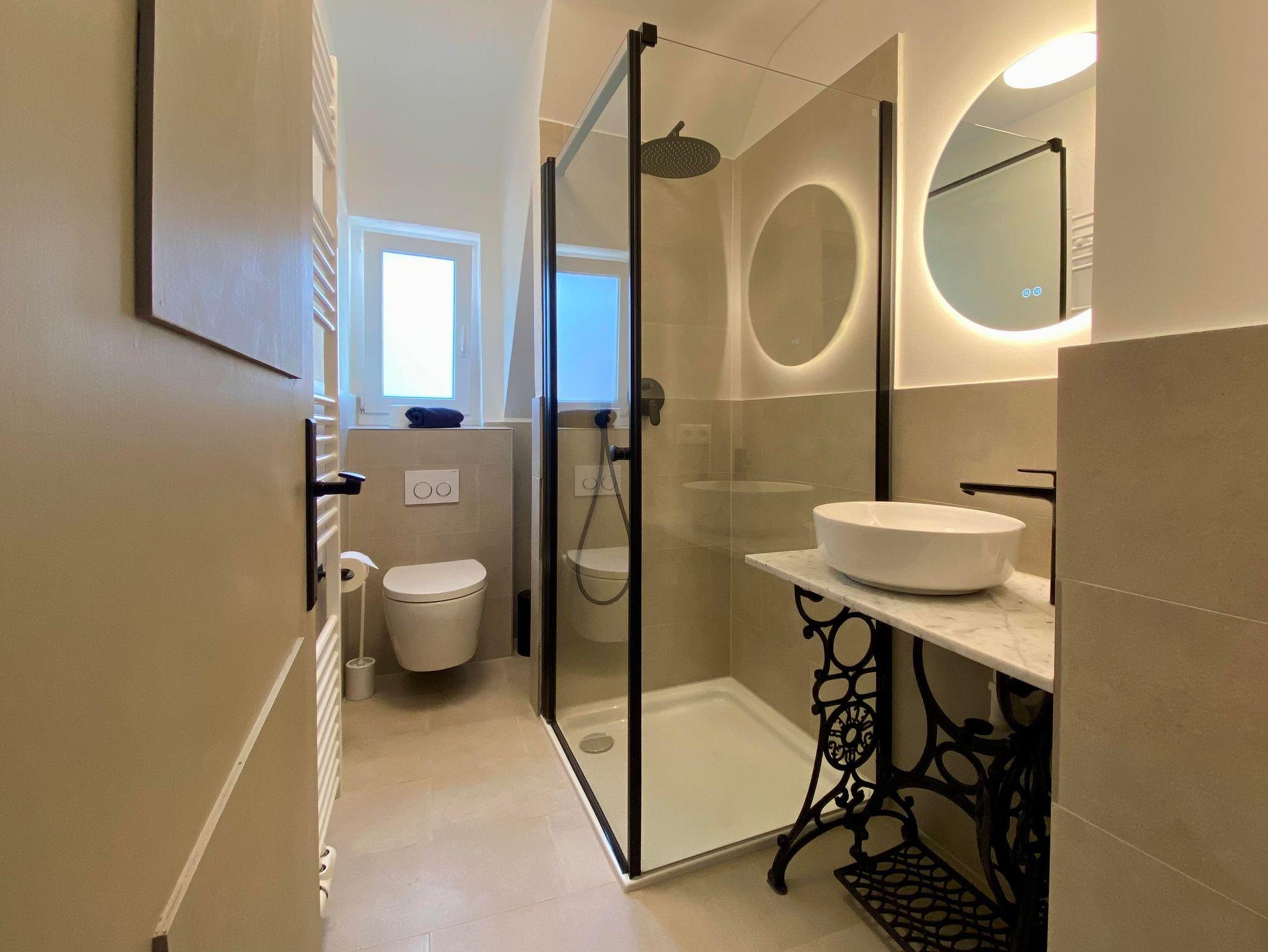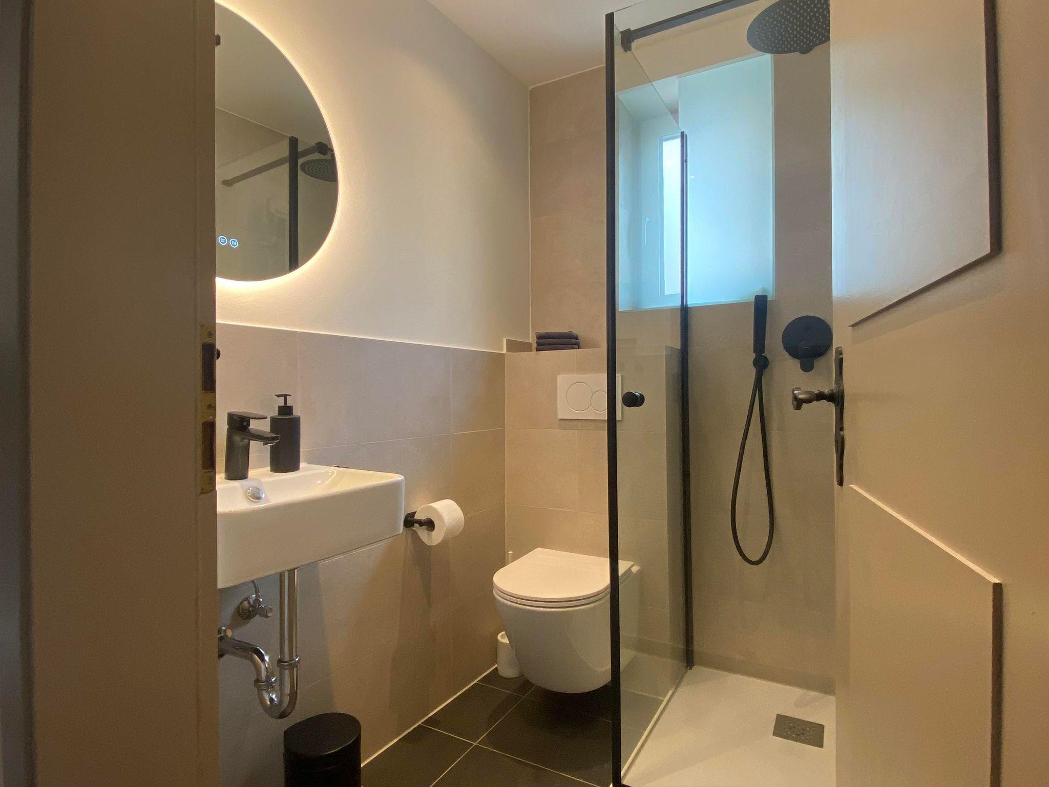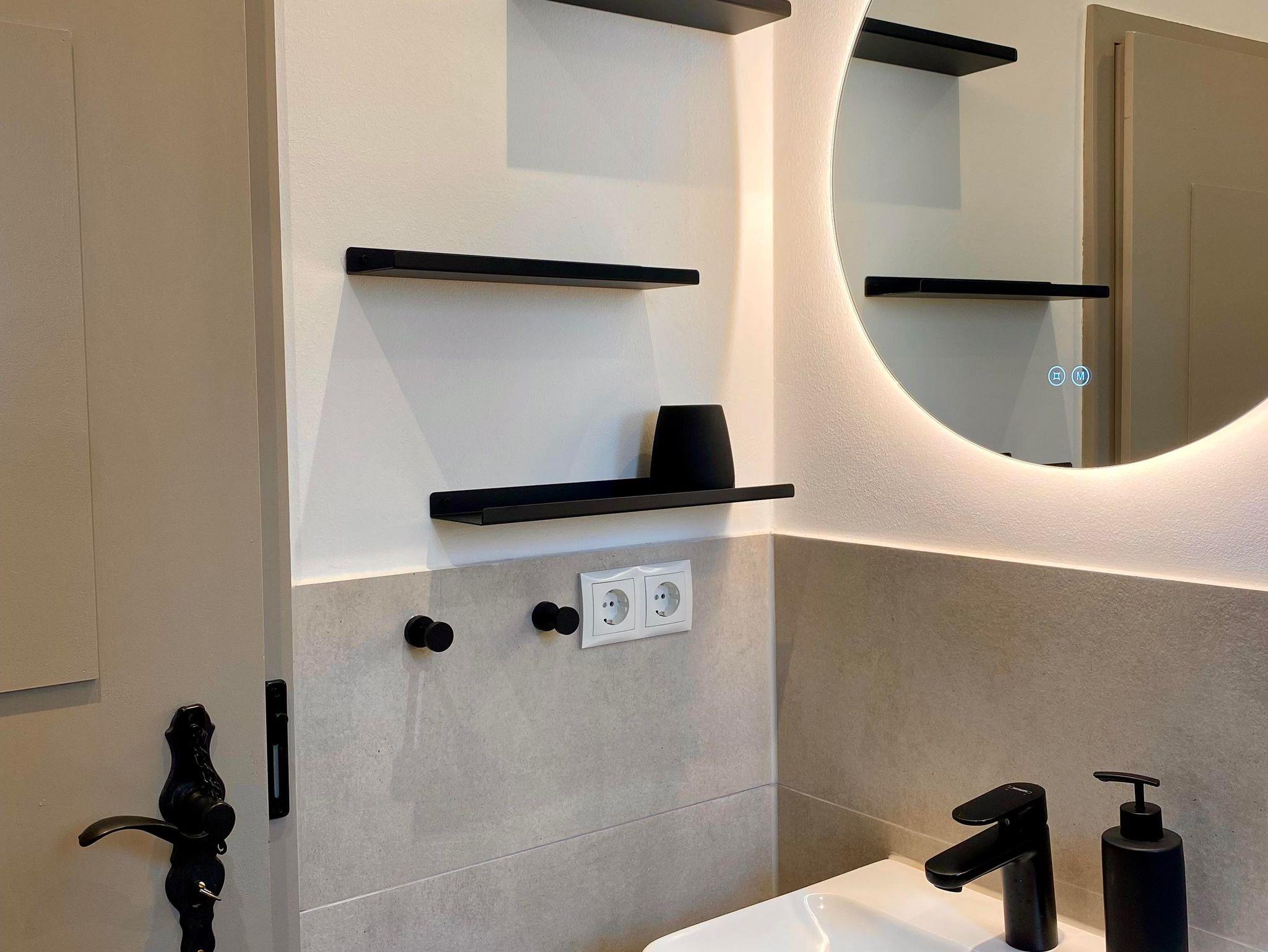 EG (Hochparterre): vollausgestattete Küche (Kühlschrank, Backofen, Induktionskochfeld, Spülmaschine, Mikrowelle, Toaster, Kaffeemaschine samt Kaffee, Wasserkocher) - Wohnbereich mit Sofas, Sesseln und TV - Esszimmer - Tageslichtbad (Dusche, WC) - Zugang zum Innenhof mit Esstisch, Grill, sonniger Lounge und Feuerschale.