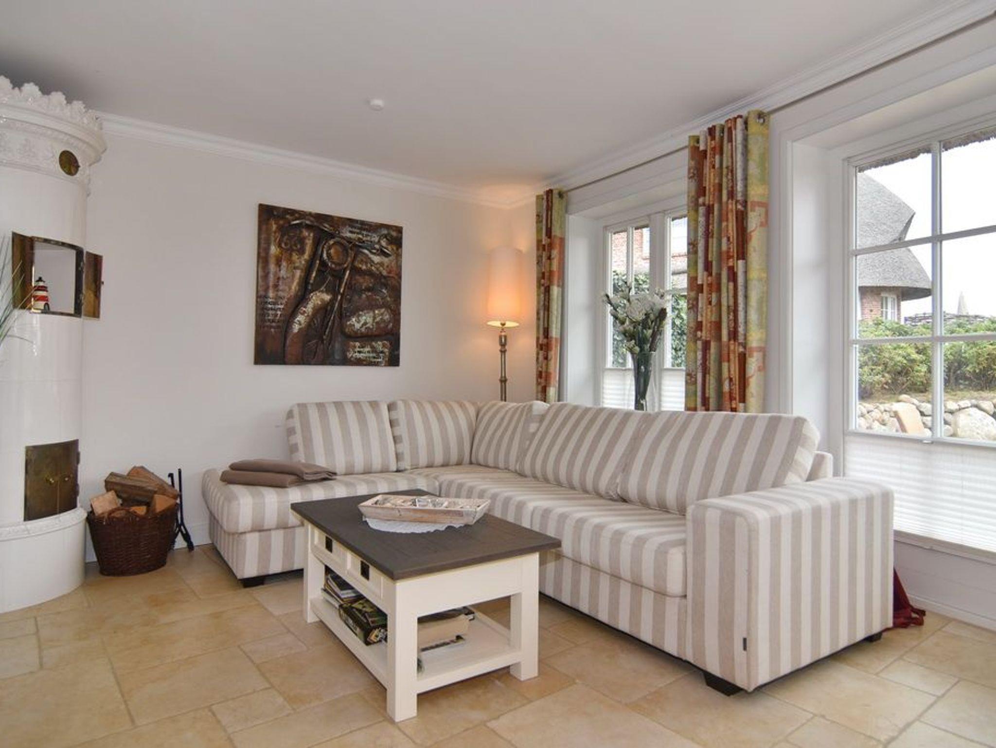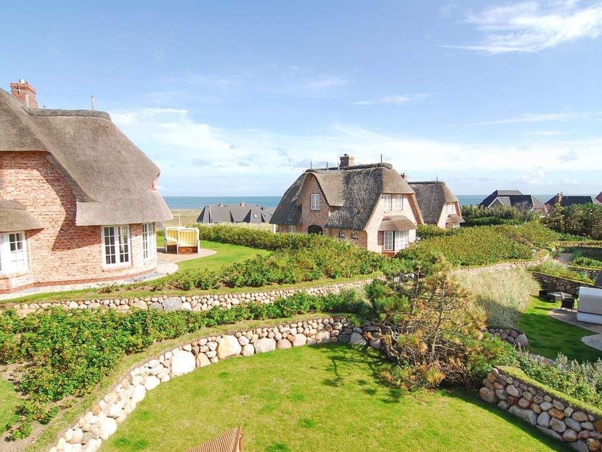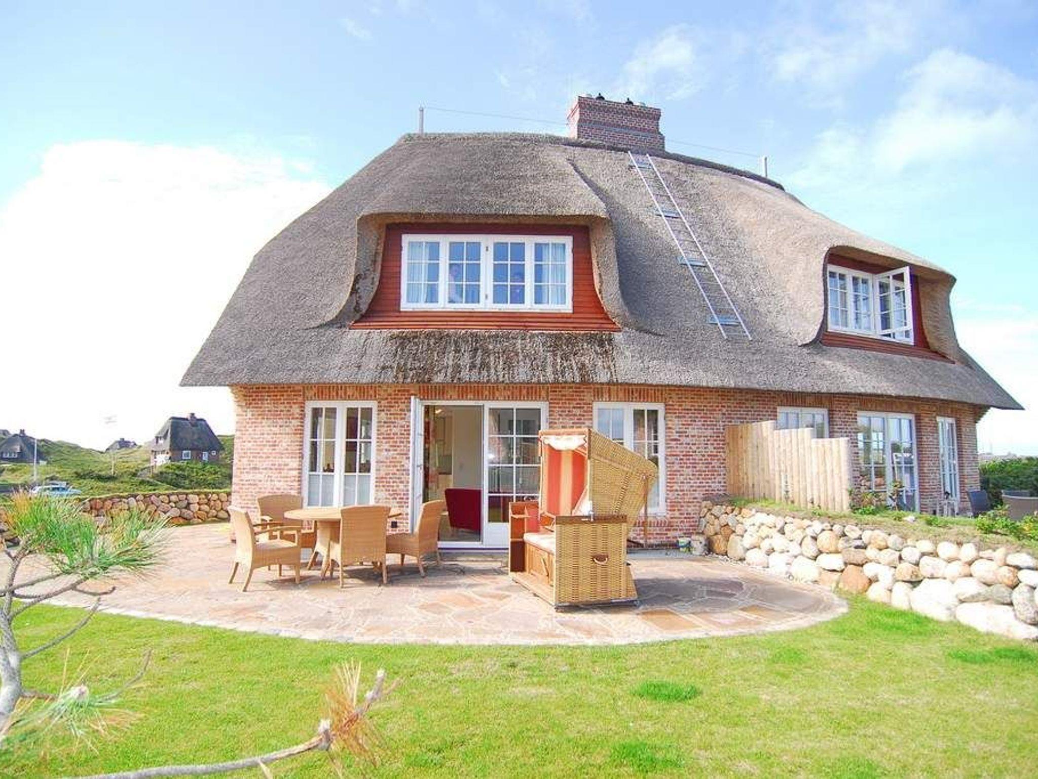 Schön gelegene Haushälfte unter Reet. Herrliche Lage auf dem Dünenkamm mit Wattblick. Ca. 52 Stufen bis zum Eingang. Ca. 155 m². EG: Wohnzimmer mit Kachelofen, Flachbild-TV, Radio, offene Küche mit Geschirrspüler, Mikrowelle und Induktionsherd, umlaufende Terrasse mit Strandkorb und Gartenmöbeln, Flur mit Garderobe, Gäste-WC OG: Schlafzimmer mit Hästens-Doppelbett (2x2m Matratze ), TV, Einbauschränke und Wattblick. Bad mit Wanne und Dusche, separates WC DG: 2 Einzelbetten (1 unter der Schräge), Flachbild-TV, begehbarer Kleiderschrank. UG: 1 Schlafzimmer mit Doppelbett und Schrank, Sauna (f. 3-4 Personen) mit Duschbad/WC. Hauswirtschaftsraum mit Waschmaschine und Trockner, Bügelbrett. Kinderhochstuhl und -reisebett im Haus. Pkw-Stellplatz vorhanden. Tierhaltung ist verboten. Bettwäsche und Handtücher sind zur Anreise aufgezogen.
