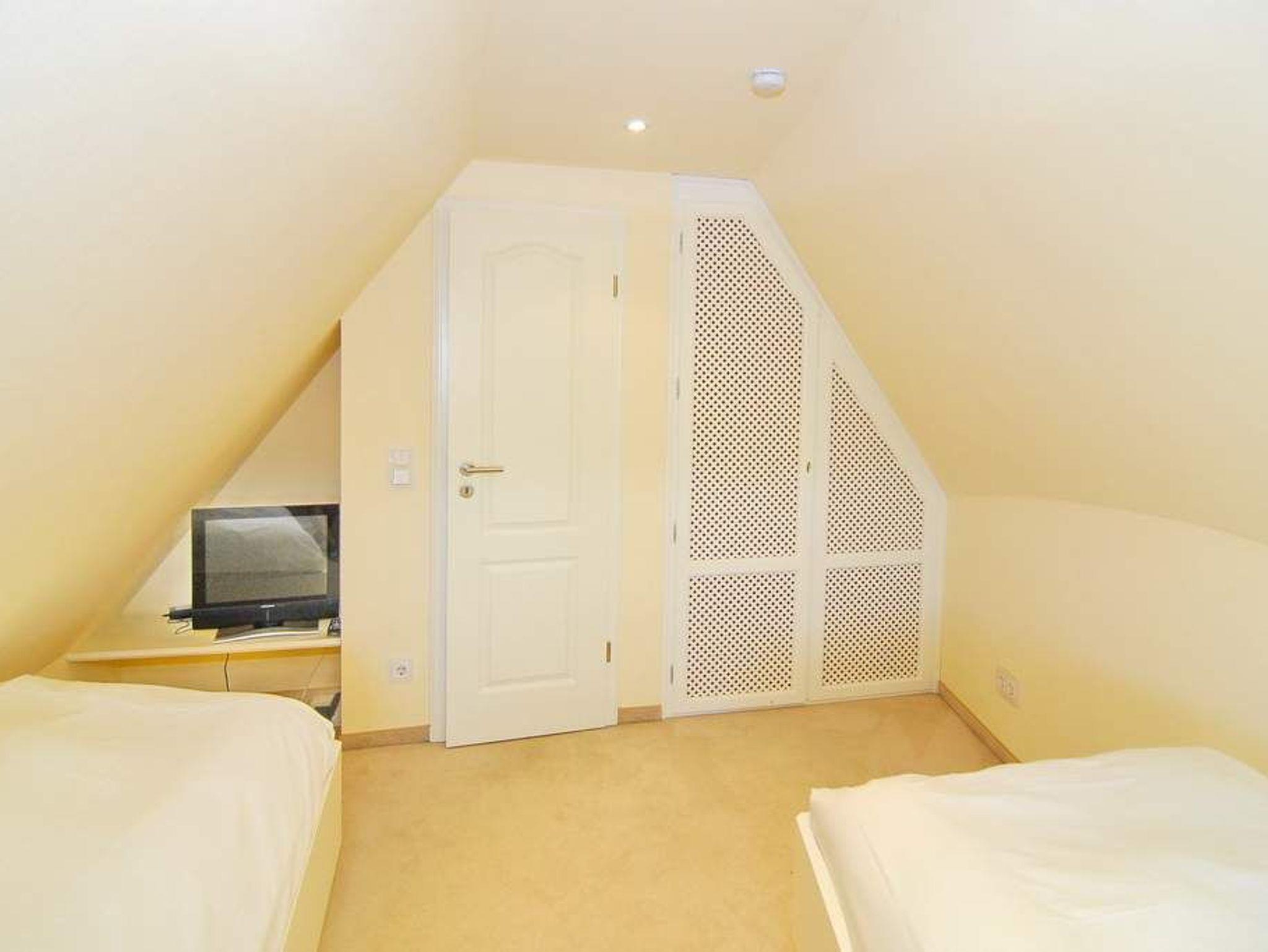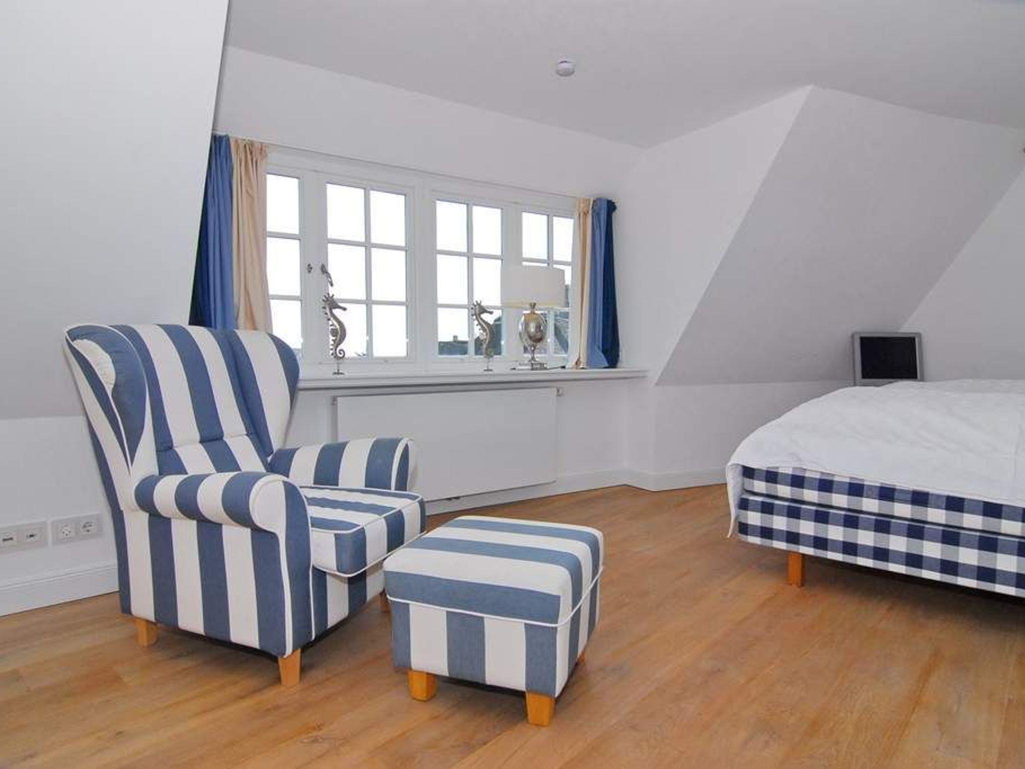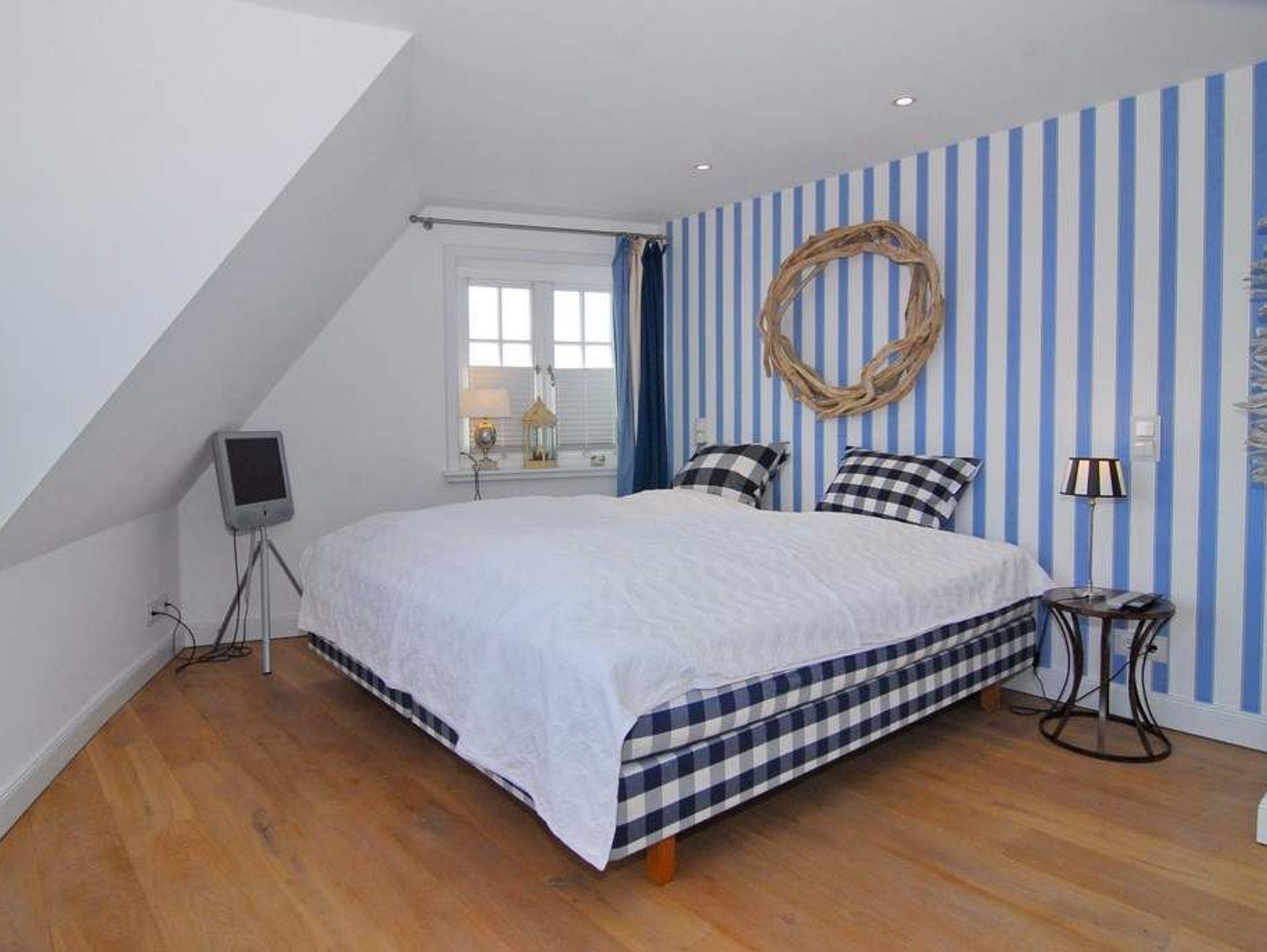 Schön gelegene Haushälfte unter Reet. Herrliche Lage auf dem Dünenkamm mit Wattblick. Ca. 52 Stufen bis zum Eingang. Ca. 155 m². EG: Wohnzimmer mit Kachelofen, Flachbild-TV, Radio, offene Küche mit Geschirrspüler, Mikrowelle und Induktionsherd, umlaufende Terrasse mit Strandkorb und Gartenmöbeln, Flur mit Garderobe, Gäste-WC OG: Schlafzimmer mit Hästens-Doppelbett (2x2m Matratze ), TV, Einbauschränke und Wattblick. Bad mit Wanne und Dusche, separates WC DG: 2 Einzelbetten (1 unter der Schräge), Flachbild-TV, begehbarer Kleiderschrank. UG: 1 Schlafzimmer mit Doppelbett und Schrank, Sauna (f. 3-4 Personen) mit Duschbad/WC. Hauswirtschaftsraum mit Waschmaschine und Trockner, Bügelbrett. Kinderhochstuhl und -reisebett im Haus. Pkw-Stellplatz vorhanden. Tierhaltung ist verboten. Bettwäsche und Handtücher sind zur Anreise aufgezogen.