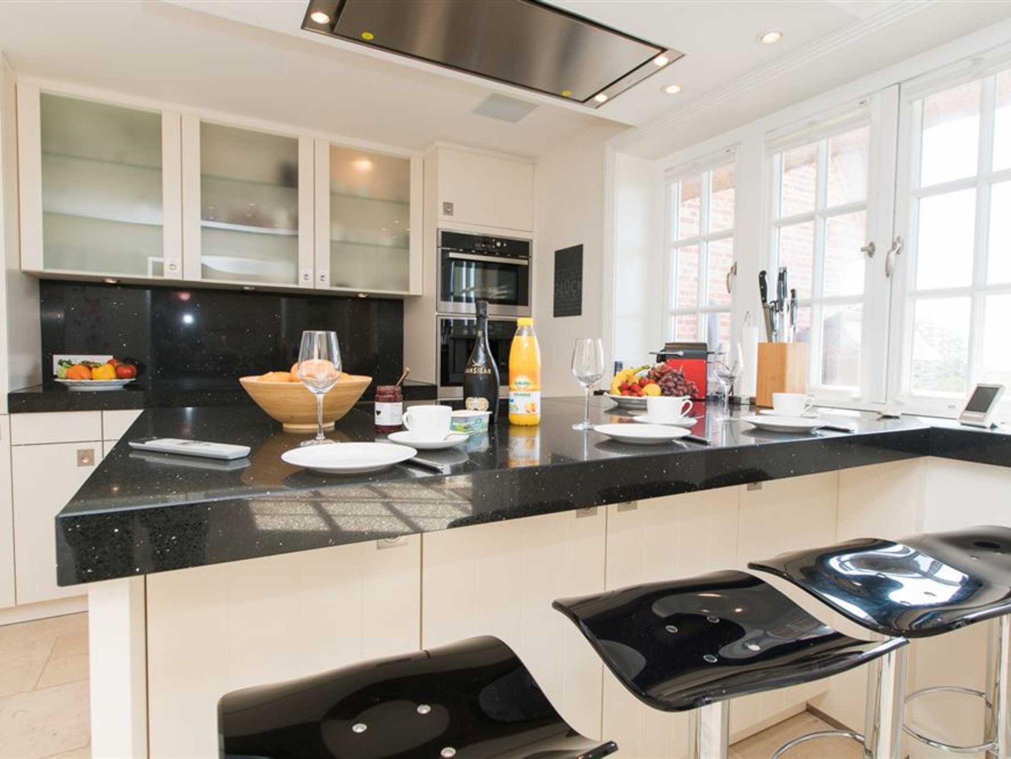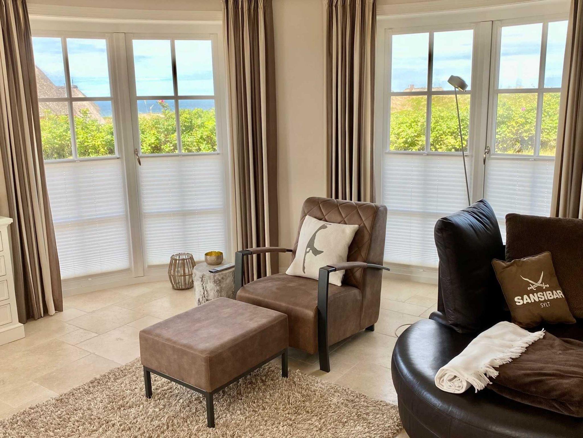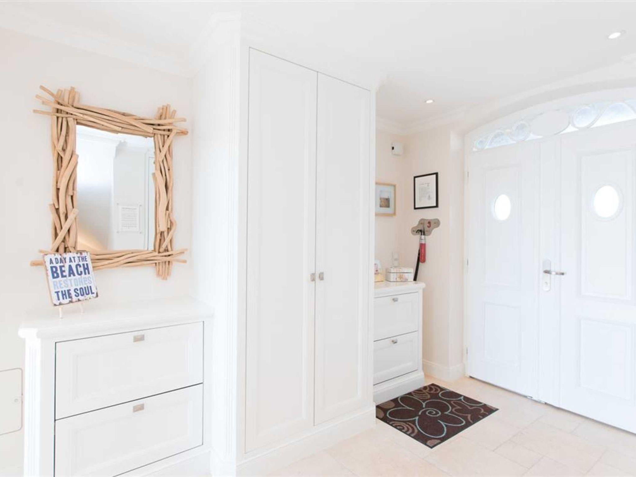 Dieses luxuriöse und mit viel Liebe zum Detail errichtete Reetdach Hausteil mit Einzelhauscharakter bietet Ihnen Platz für bis zu 6 Personen. Jeweils ein Gäste-WC in Erd- und Untergeschoss. Dazu wartet auf Sie ein luxuriöses Wellnessbad, dass einer wahren Wohlfühloase gleicht. Das Wellnessbad ist ausgestattet mit einem Doppelwaschbecken und beinhaltet zusätzlich neben einer Sauna, eine riesige ebenerdige Dusche ausgestattet mit einer Schwall- und einer Regendusche.