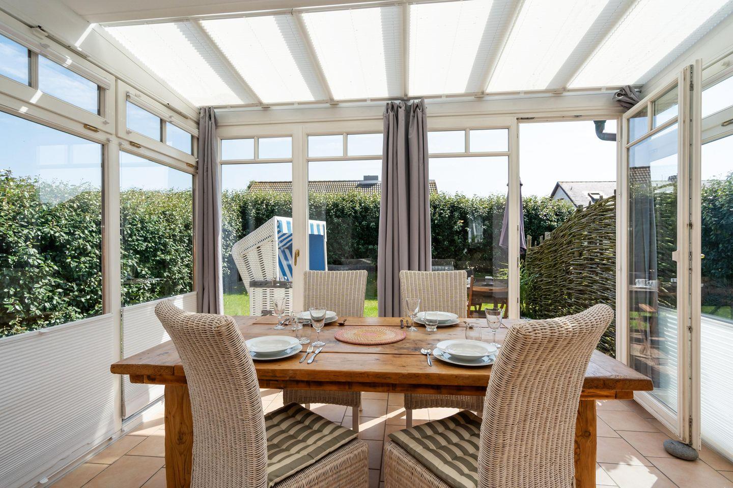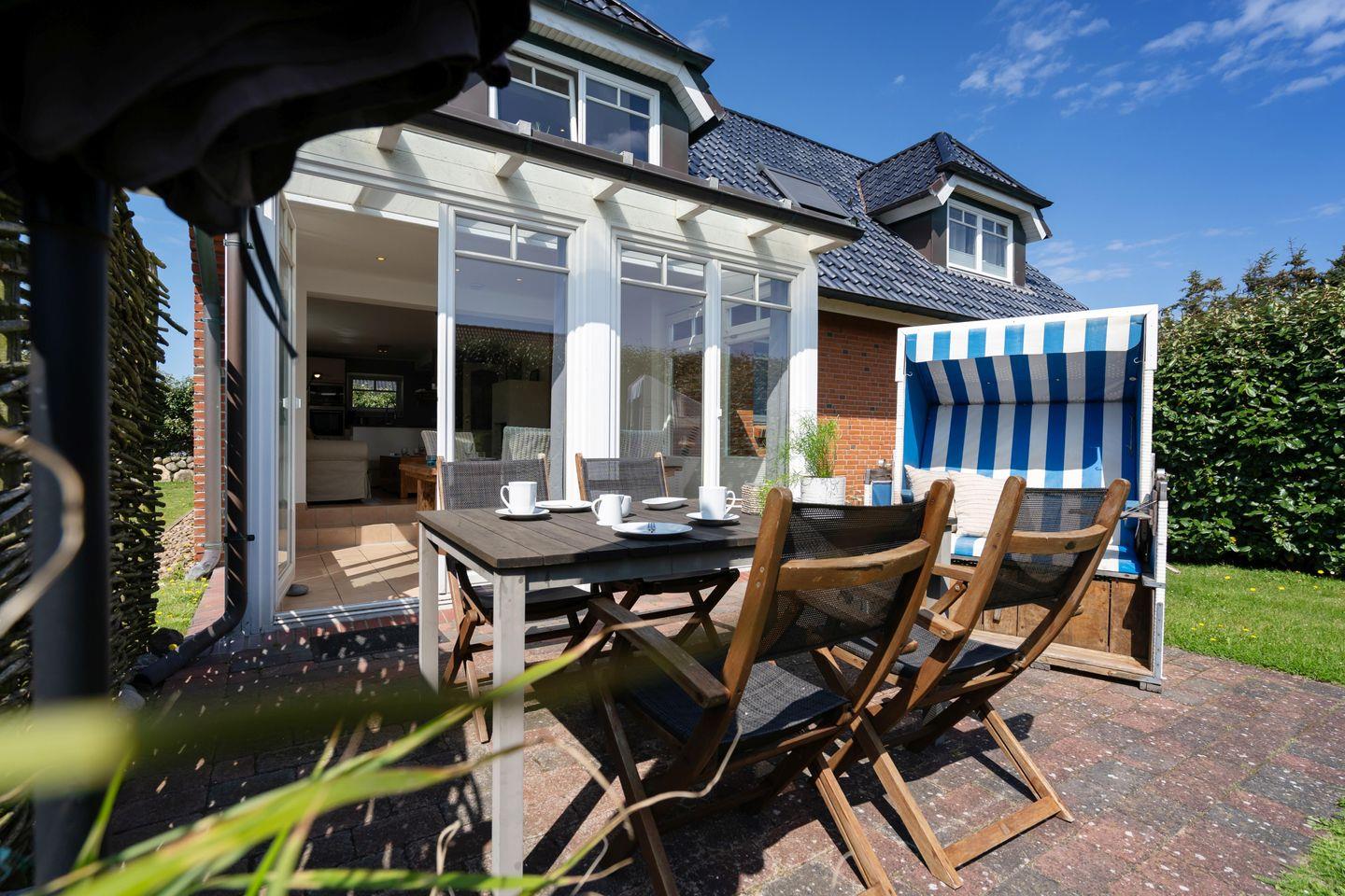 Modern renoviertes ca. 85 m² großes Ferienhaus in ruhiger, zentraler Strandlage für 3 bis 4 Personen in Rantum mit schönem Garten und zugehörigem PKW-Stellplatz. Inklusive WLAN und Strandkorb (in der Saison).