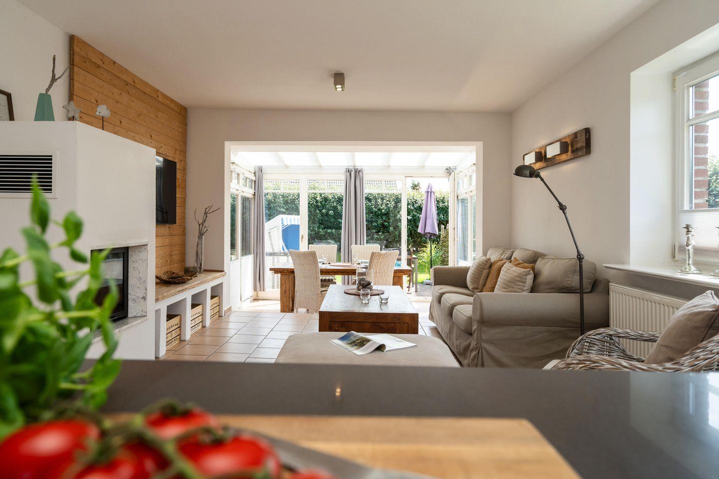 Dieses charmante ca. 85 m² große Ferienhaus für 3 bis 4 Personen befindet sich in einer ruhigen Lage in unmittelbarerer Strandnähe. "Am Sandwall West" bietet Ihnen eine offene, moderne und voll ausgestattete Küche samt Geschirrspüler mit angrenzendem Wohn- und Esszimmer sowie hellem Wintergarten. Im Erdgeschoss befindet sich ansonsten ein Schlafzimmer (140x200 cm) sowie ein Gäste WC. Über eine Treppe gelangen Sie ins Obergeschoss. Dort erwartet Sie großzügiges Doppelschlafzimmer (180x200 cm) mit TV sowie das moderne Badezimmer mit Dusche und Badewanne. Nutzen Sie gerne die schöne Südterrasse samt Strandkorb (in der Saison). Das Ferienhaus verfügt über WLAN, einen zugehörigen PKW-Stellplatz und eine Waschmaschine (in der Küche). Haustiere sind leider nicht erlaubt.