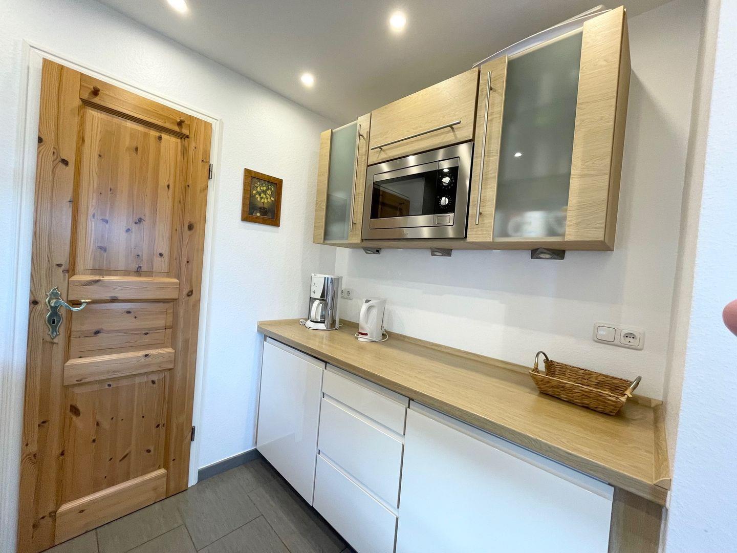 Das liebevoll eingerichtete 2-Zimmer-Appartement verfügt über einen gemütlichen Wohn- Essbereich und ein Doppelschlafzimmer mit großem Einbauschrank. Die separate neu eingerichtete Küche mit Geschirrspüler, Mikrowelle , vier Cerankochfeldern und diversen Kleinküchengeräten lädt zum Kochen ein. Das Duschbad und der kleine Flur mit Garderobe sind ebenfalls neu saniert und alle 3 Räume sind mit Fußbodenheizung ausgestattet.