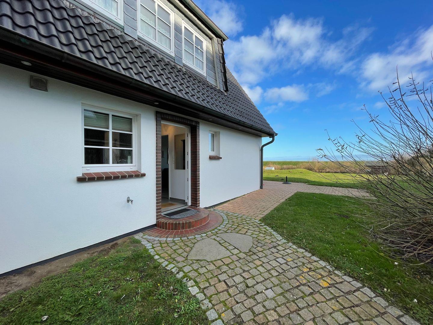Das Haus ist umgeben von einer 1400 qm Gartenwiese. Vom Wohnzimmer aus erreicht man die Terrasse mit Süd- Ost- und Westausrichtung und Wattenmeer Blick. Der Parkplatz befindet sich vor dem Haus. Eine Fahrradhütte steht Ihnen zur Verfügung. Für weitere Fragen, steht Ihnen sehr gerne die Vermietung "Appartements Eberhardt" zur Verfügung.