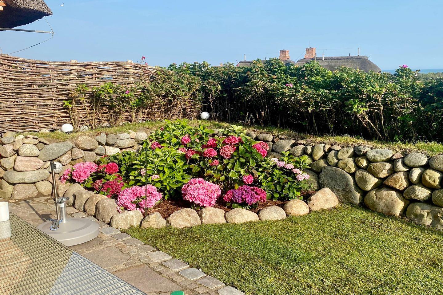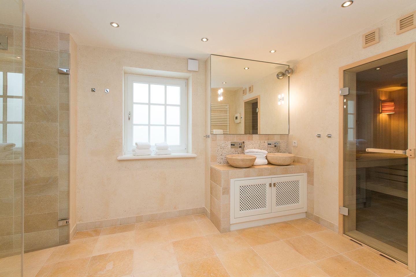 Dieser luxuriöse und mit viel Liebe zum Detail errichtete Reetdach Hausteil mit Einzelhauscharakter bietet Ihnen Platz für bis zu 6 Personen. Das Objekt besticht durch seine stilvolle und moderne Einrichtung, sowie seiner technischen Vielfalt der ganz besonderen Art. Es erwartet Sie ein exklusives Design mit hellen Natursteinfliesen, Fußbodenheizung in den Bädern und Wohnbereichen und jeweils einem Gäste-Wc in Erd- und Untergeschoss. Dazu wartet auf Sie ein luxuriöses Wellnessbad, dass einer wahren Wohlfühloase gleicht. Das Wellnessbad ist ausgestattet mit einem Doppelwaschbecken und beinhaltet zusätzlich neben einer Sauna, eine riesige ebenerdige Dusche ausgestattet mit einer Schwall- und einer Regendusche. Nicht zu vergessen der rundum komplett verglaste Kaminofen, welcher durch sein elegantes Design für gemütliche Abende im Wohnzimmer sorgt. Im kompletten Haus ist ein atemberaubendes, komplett vernetztes Surround System installiert. Sie können über mehrere Touch-Pads aus unterschiedlichen Räumen, die Musik in der Sauna, ihrem Schlafzimmer und sogar auf der Terrasse steuern und somit dem Raum entsprechend für die passende Stimmung sorgen.