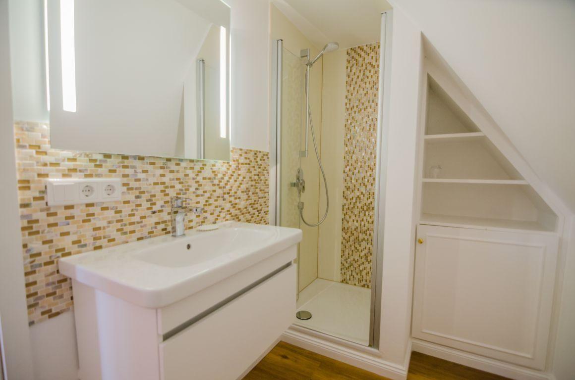 Schlafzimmer, Badezimmer mit Dusche, offene Küche zum Wohn-/Essbereich, PKW-Stellplatz verfügbar, WLAN vorhanden (ohne Gewähr), Hunde auf Anfrage willkommen.