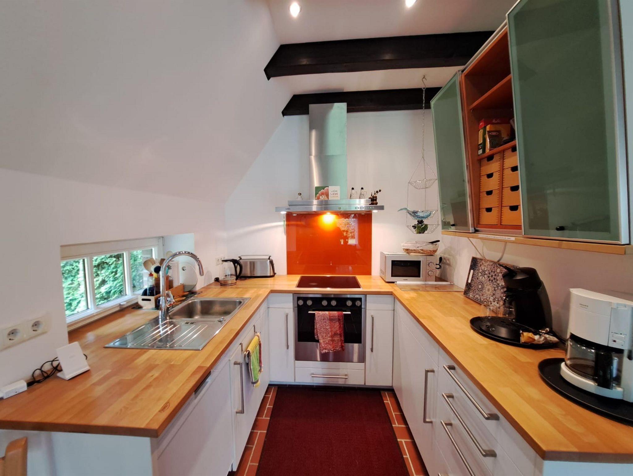 • Küche: Umfangreiche Ausstattung mit Kochgeschirr, Kaffeemaschine (Filterkaffee & Senseo-Pad), Toaster, Wasserkocher, Backofen, E-herd und Dunstabzugshabe.