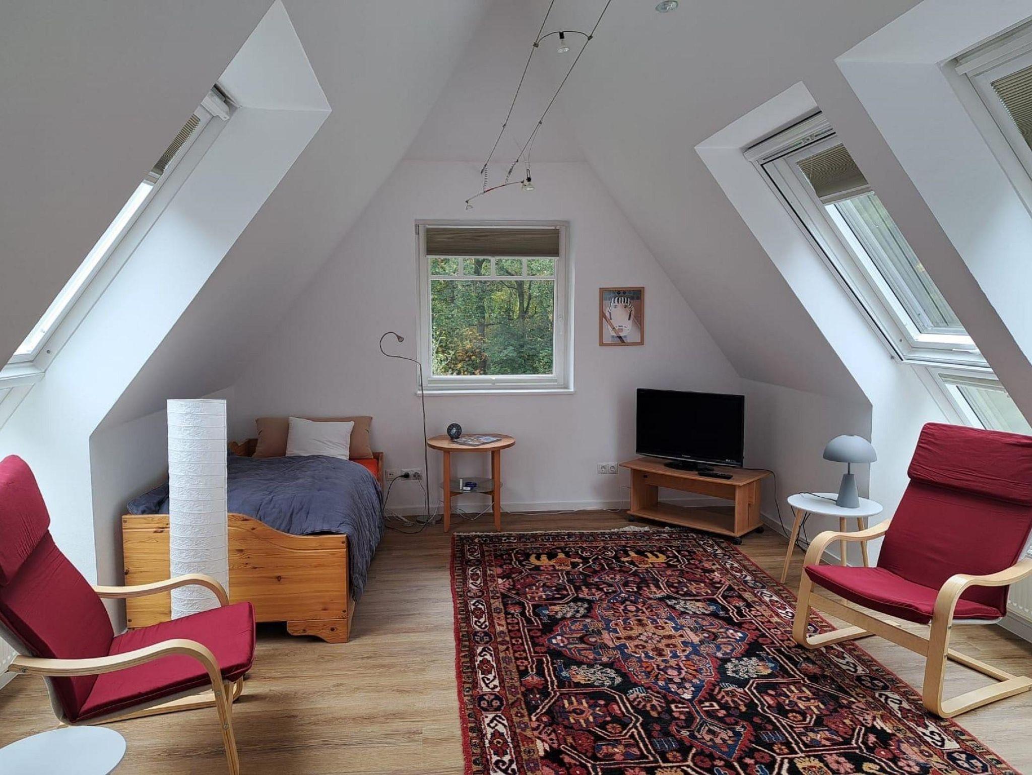 Das Appartment erstreckt sich über zwei Etagen und verfügt über einen seperaten Eingang, mit Terrasse und Zugang zum Garten. Von der Terrrasse und diversen Fenstern im Obergeschoss aus haben Sie einen wunderbaren Blick auf die namensgebende Rotbuche.