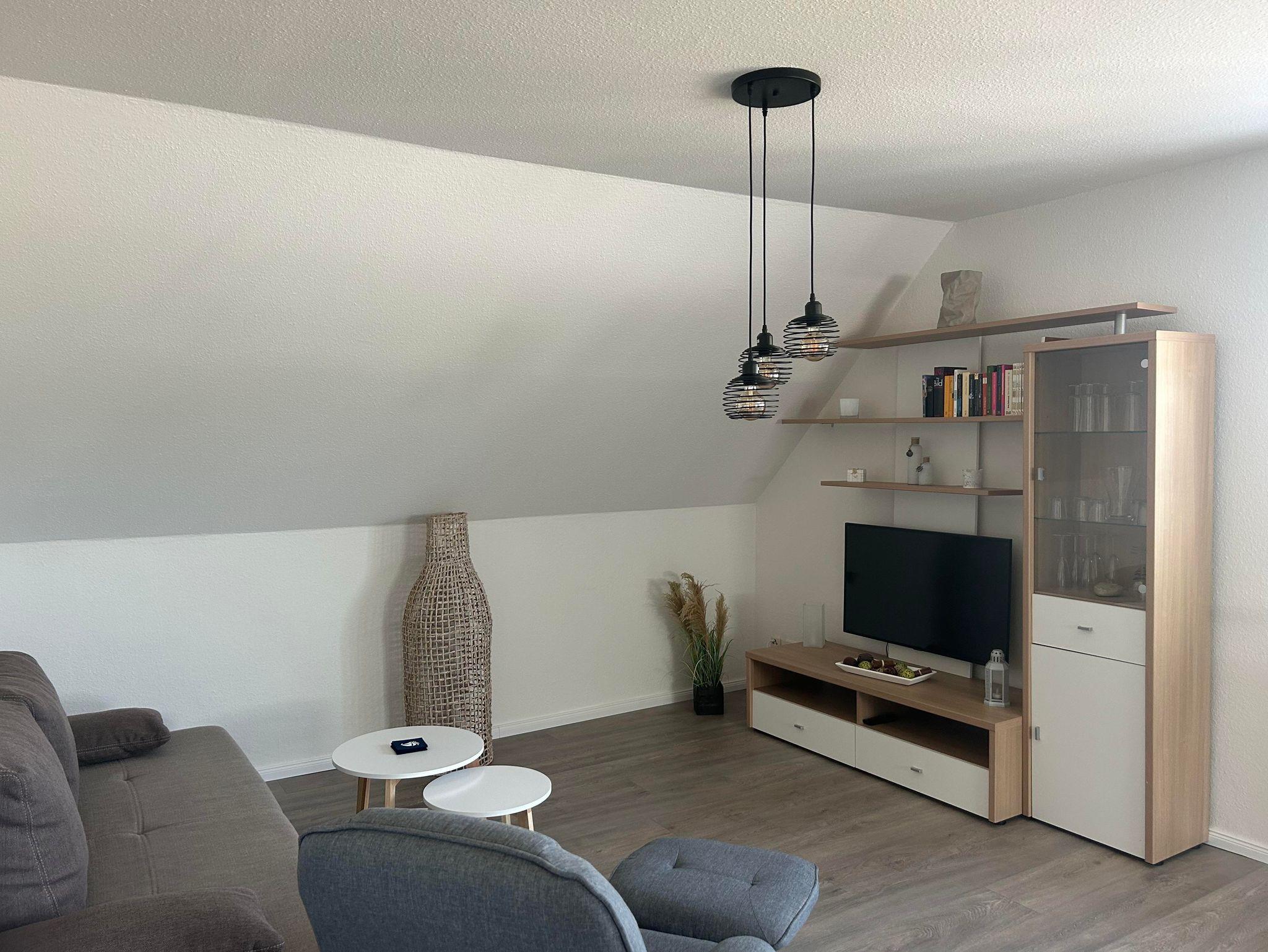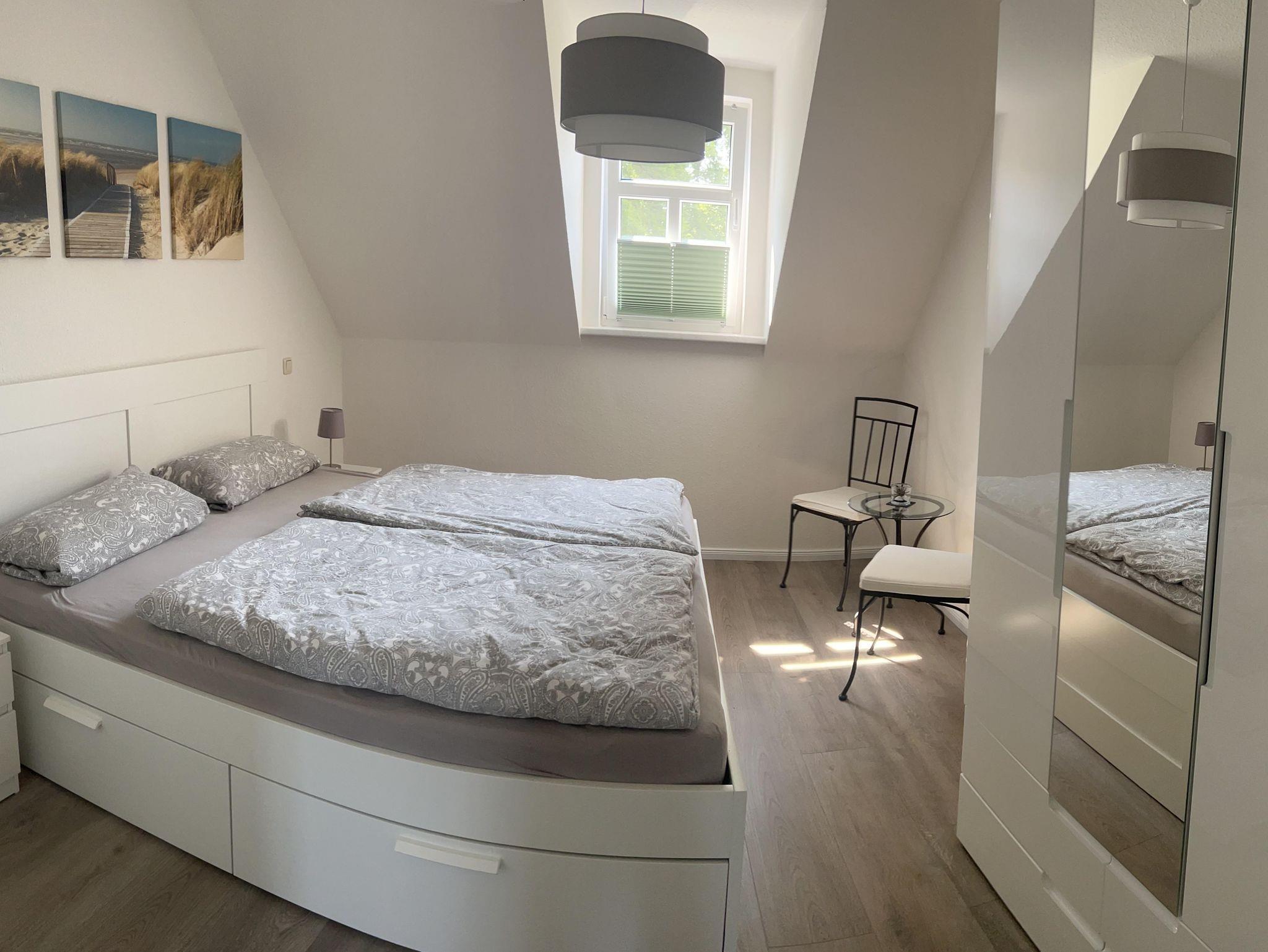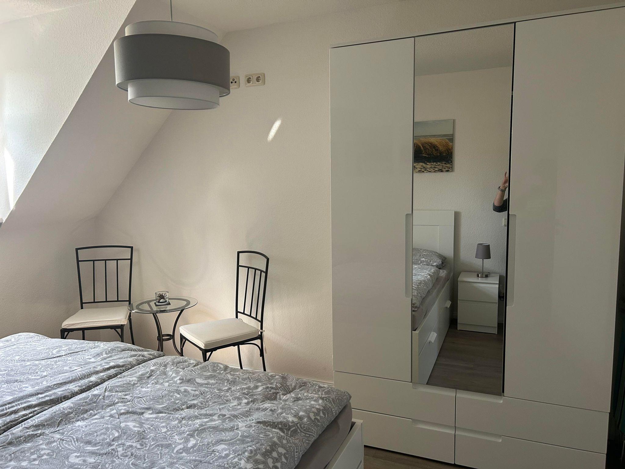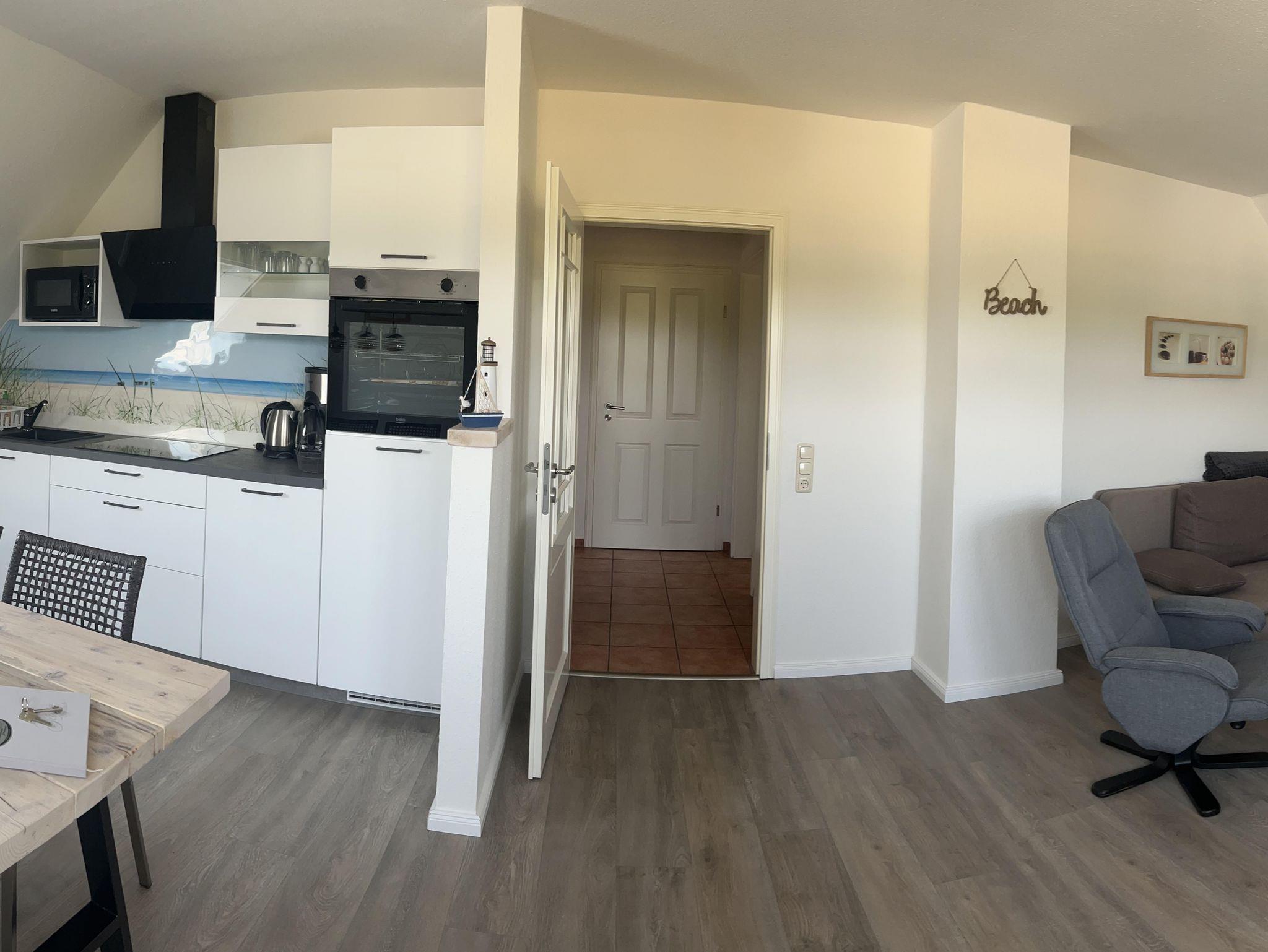 Die Wohnung befindet sich in der ersten Garage und verfügt über einen eigenen Stellplatz direkt vor der Tür. Sie bietet ein gemütliches Schlafzimmer mit Doppelbett und Kleiderschrank sowie einen Wohnbereich mit komfortablem Schlafsofa. Die offene Einbauküche ist komplett ausgestattet mit Kühlschrank, Mikrowelle, Backofen, Ceranfeld, Geschirrspüler, Kaffeemaschine, Toaster und Wasserkocher. Das moderne Tageslichtbad verfügt über eine Dusche, WC, Fön und Kosmetikspiegel. Bettwäsche und Handtücher sind inklusive.