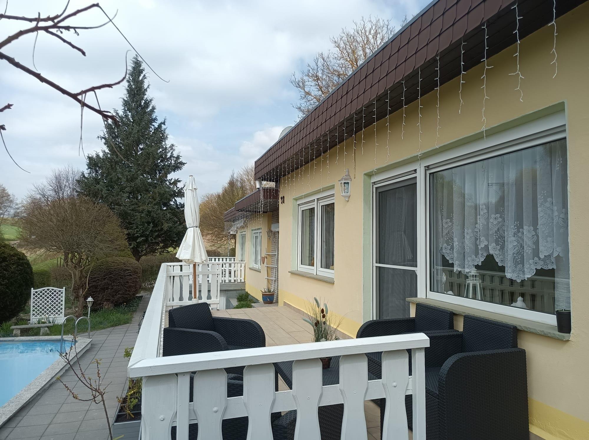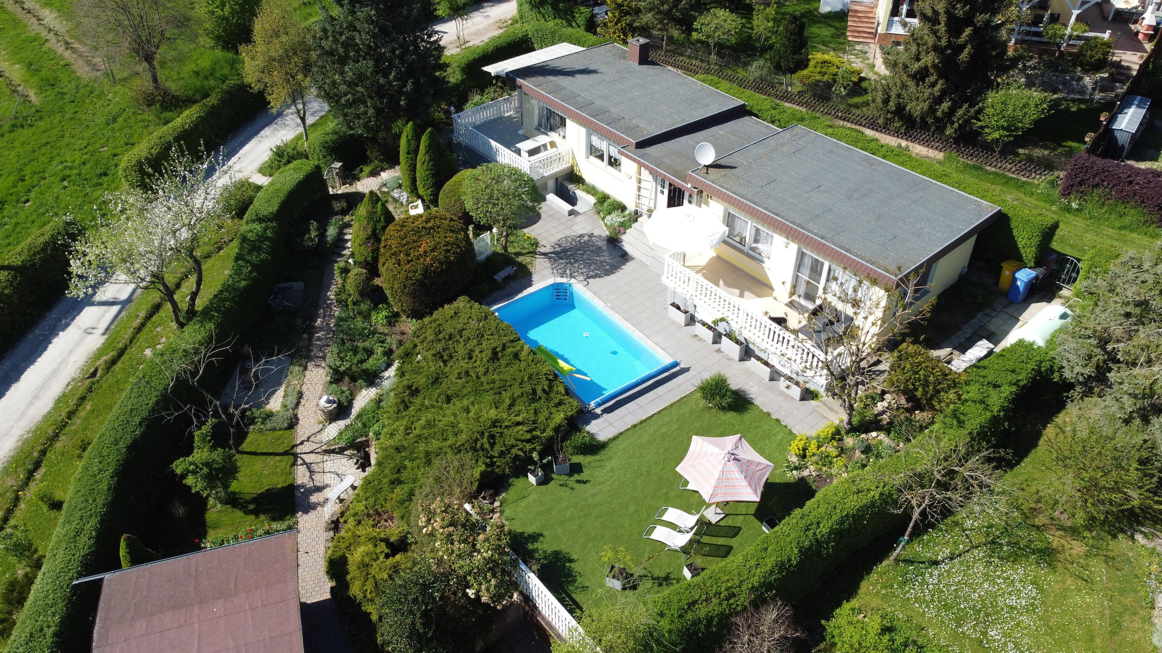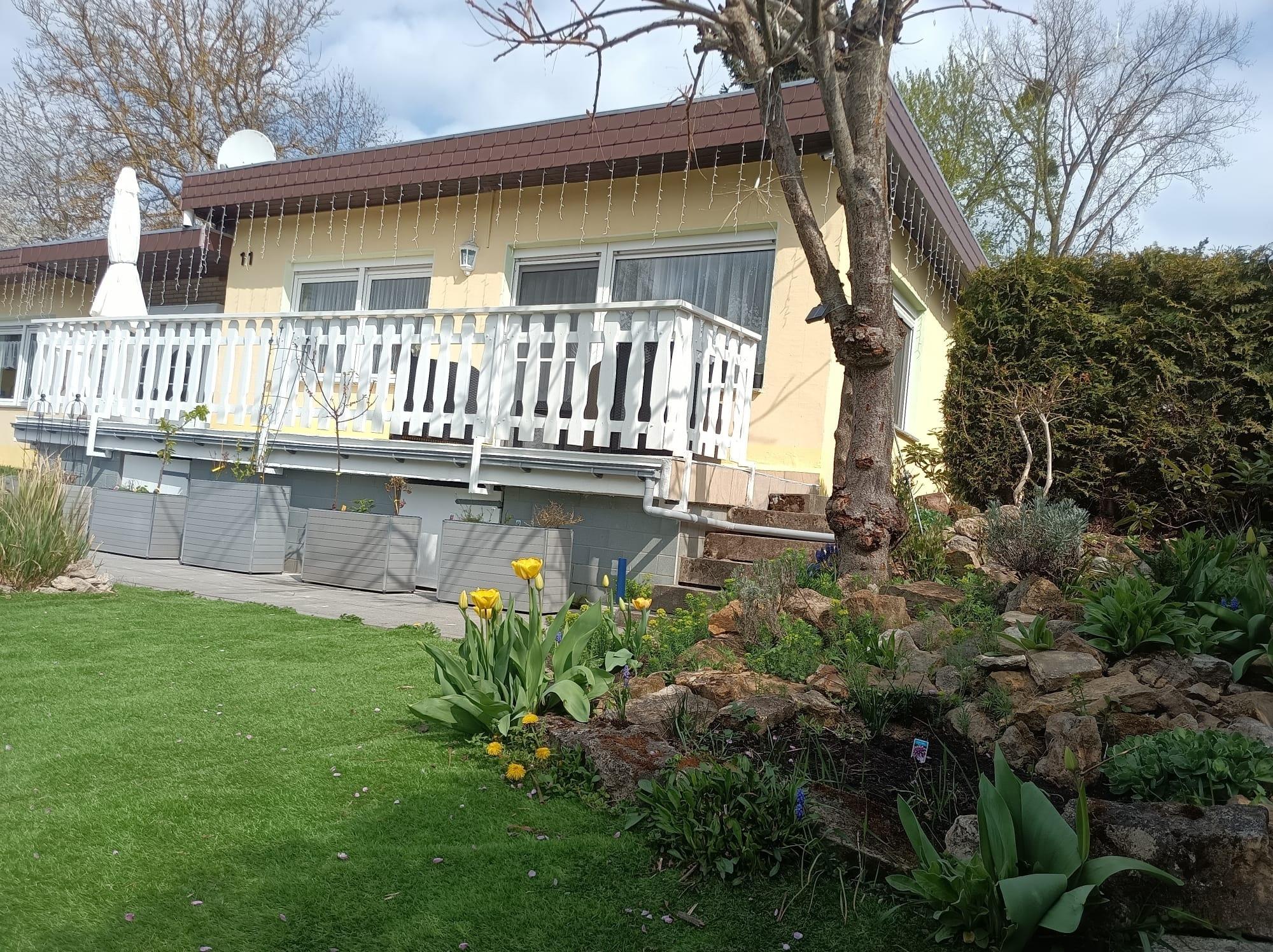 Wir bieten einen gut ausgestatteten Bungalow mit großen Garten und Pool sowie Parkplatz und Unterstellmöglichkeiten für Fahrräder.