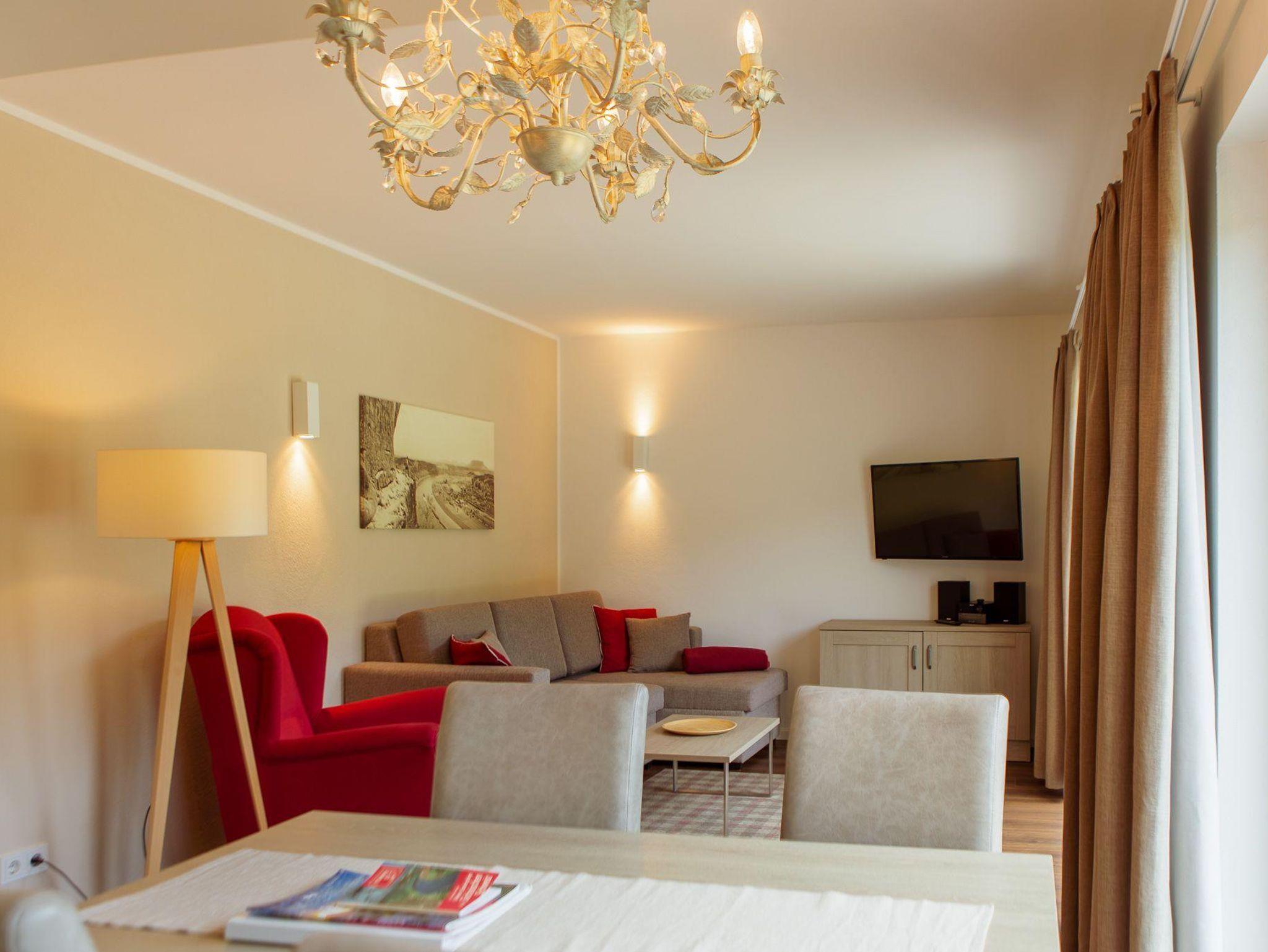 Höchster Wohnkomfort erwartet Sie in der Wellnesssuite 85m² und großem Balkon. Modern ausgestattet mit zwei Schlafzimmern sowie einem großem Badezimmer mit ebenerdiger Dusche, WC, Fön, und Ihrer privaten Sauna, Wohnküche mit allen Annehmlichkeiten (Geschirrspüler, Elektroherd, Kühlschrank, Geschirr etc.), Flat-Screen-TV, und kostenfreies WLAN. Handtücher und Bettwäsche sind selbstverständlich vorhanden. Verteilt auf 4 Residences, mit Parkplatz (kostenpflichtig) und einem Spielplatz für Kinder bieten die Apartments außerdem größtmögliche Privatsphäre für einen unbeschwerten Urlaubsgenuss.
