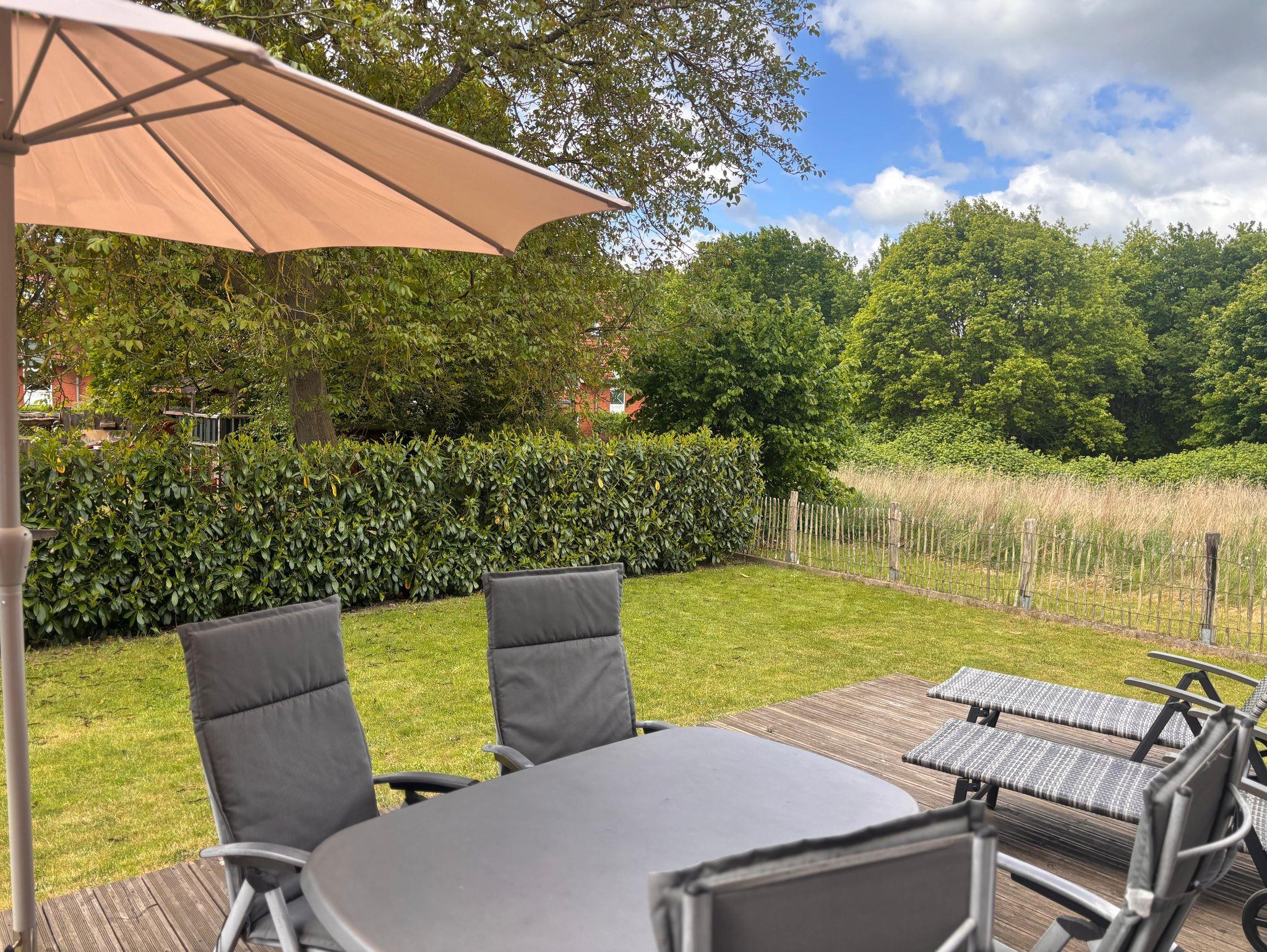 Unser Ferienhaus ist barrierefrei und verfügt über breite Türen. Zum Haus gehört ein Garten (größtenteils eingezäunt, nur die Durchgänge sind offen) mit Sonnenterrasse, Gartenmöbeln und einem Doppelcarport mit Fahrrad-/Geräteschuppen. Die Lage des Hauses besticht durch einen wundervollen Blick ins Grüne. Den Küchensee erreicht man zu Fuß in 10 min. Die Räume befinden sich alle ebenerdig.